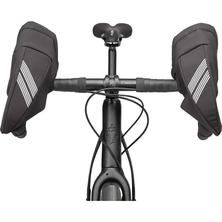 45NRTH Draugenklaw Drop-Bar Pogies holder hendene varme og tørre, og gir full tilgang til bremse- og integrerte girhendler på kalde pendleturer, treningsøkter, rittdager og langturer i skiftende værforhold. Værbestandig softshell-materiale på utsiden beskytter mot vind og vann. På innsiden sørger myk fleece for å holde på varmen og skape en komfortabel sone rundt styret. Enkel montering gjør at du kan ta dem på kun når forholdene krever det. Maksimer komforten og minimer vekten med Draugenklaw Drop-Bar Pogies.