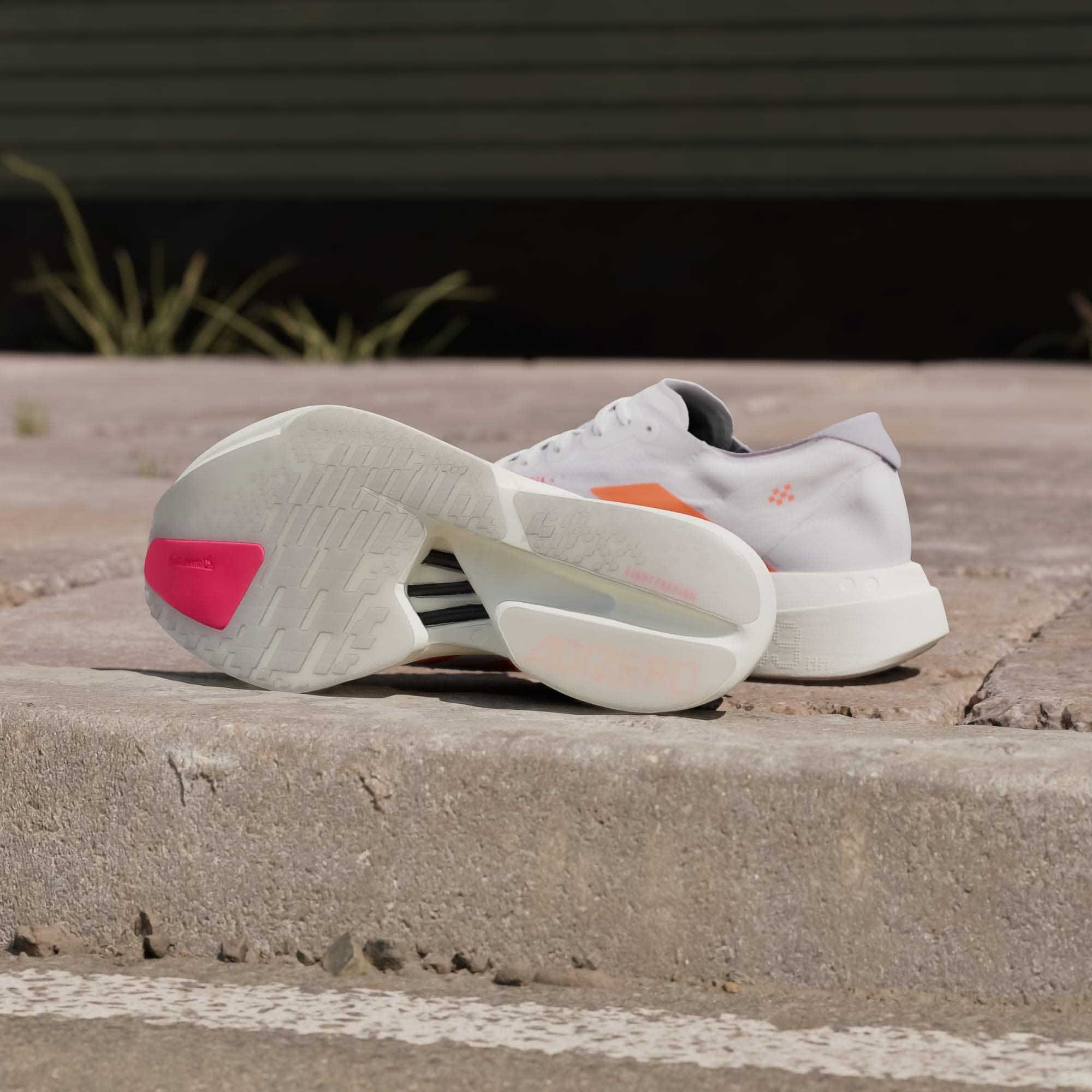 Vippepunktet i mellomsålen forbedrer løpeøkonomien, mens et dobbelt lag av adidas sitt letteste og mest responsive LIGHTSTRIKE PRO gir optimal demping i hvert steg, slik at du kan opprettholde energien over tid. Skoene har en yttersåle med Continental™-gummi for sklisikker overgang, kombinert med LIGHTRAXION-teknologi som reduserer vekten uten å gå på kompromiss på grep.
