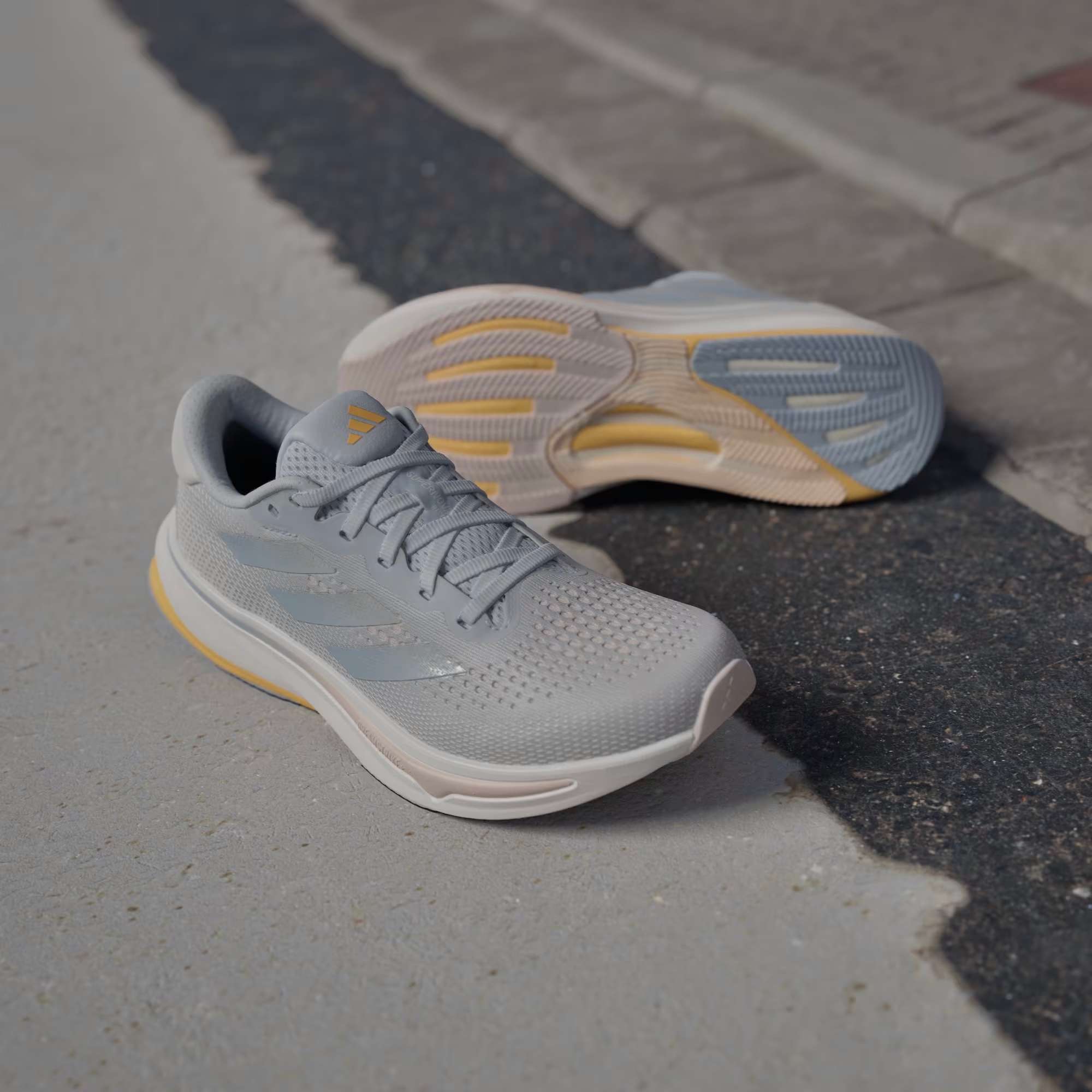 Dreamstrike+-mellomsålen demper landingene og gir sammen med Support Rods god energiretur for en smidig løpsopplevelse. Med Adiwear-yttersålen får du pålitelig grep og langvarig slitestyrke, så du kan bruke skoene så lenge som mulig. Skoen har en dropp på 9mm som gjør at du ruller på underlaget og får god fremdrift med lite anstrengelse.