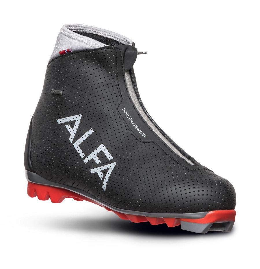 - ALFAs unike skisko er laget med vanntett og pustende GORE-TEX membran og ekstra isolasjon i sålen som sikrer behagelige føtter hele turen.