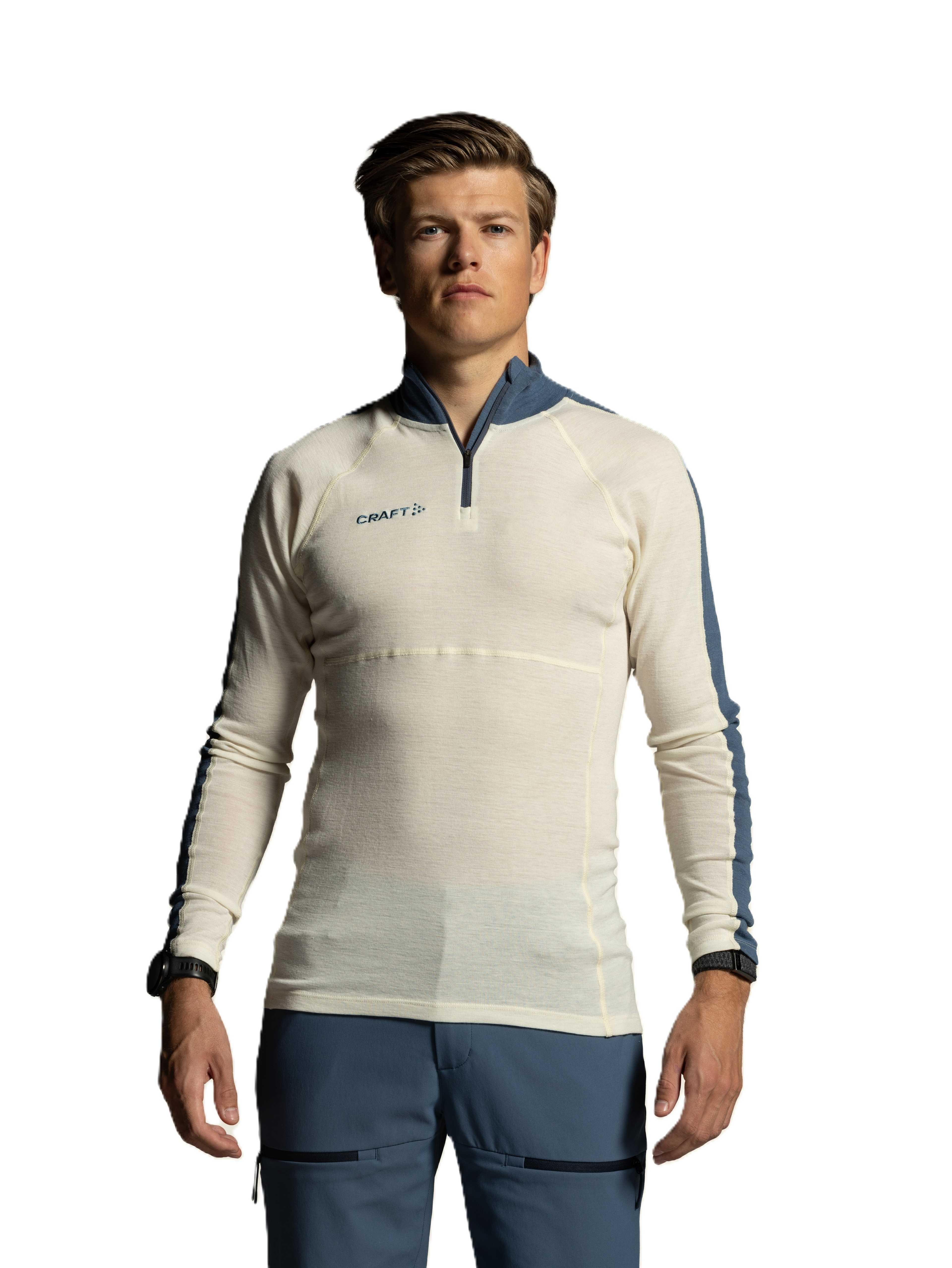 OL Norway Wool Merino HZ er en høyfunksjonell baselayer jersey laget av en myk merinoull-blanding, som holder deg tørr hele dagen lang. Denne avanserte halv-zip jerseyen kombinerer merinoull med høykvalitets polyester og polyamid, for å gi utmerket termoregulasjon så fremt som effektiv fuktighetstransport, god holdbarhet og optimal passform. Et perfekt valg for treningsøkter av både lav og høy intensitet i kalde forhold.