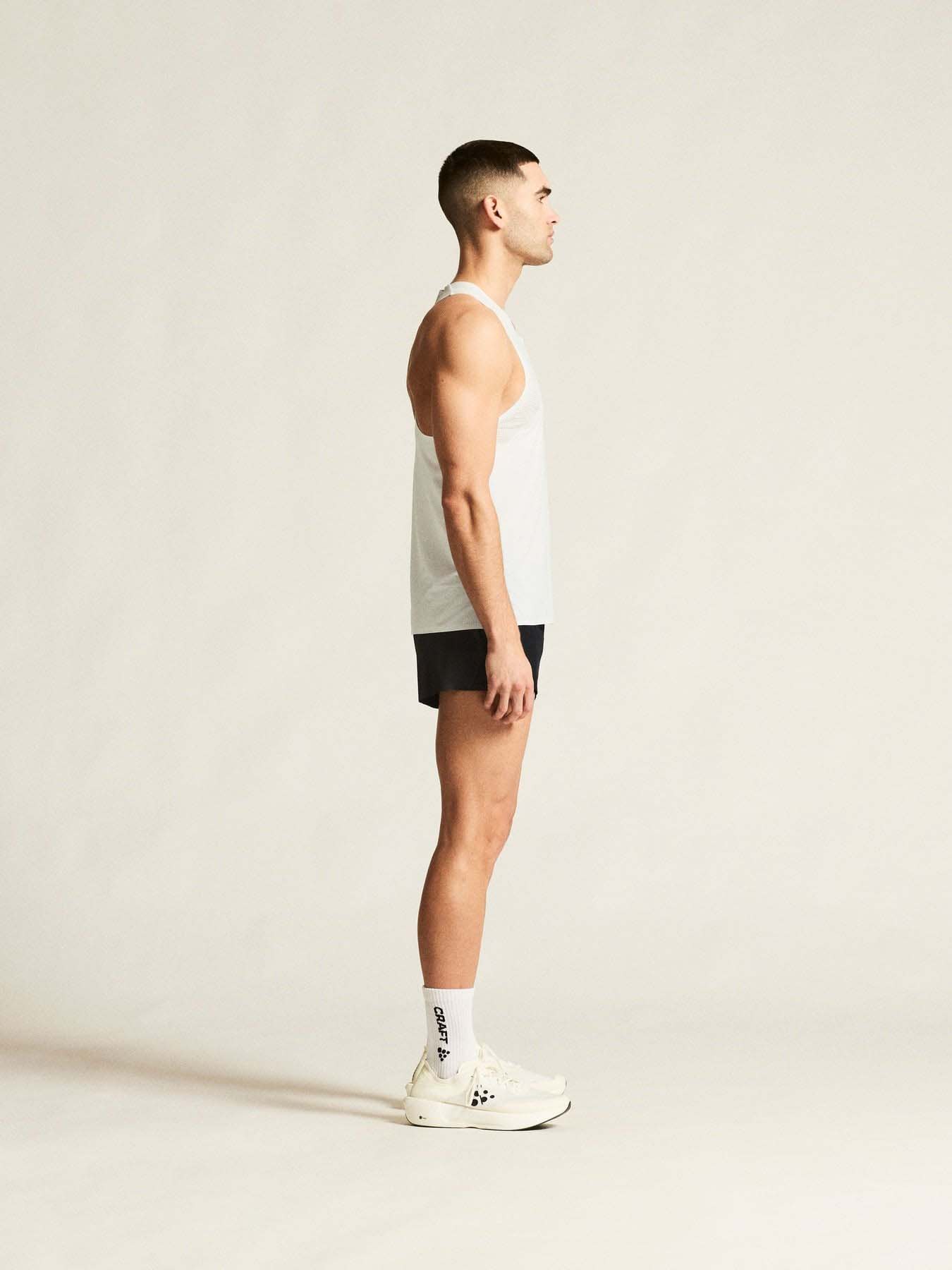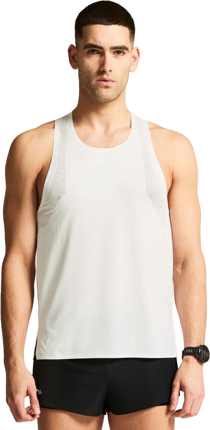 Singletens profesjonelle jersey-materiale med strategisk plasserte perforeringer gir effektiv fukttransport og optimal ventilasjon, mens teipede kanter ved hals og erme minimerer gnagsår. Racerback-design og sidesplitter gir fri bevegelighet, slik at du kan fokusere på tempo og form under intensive økter.