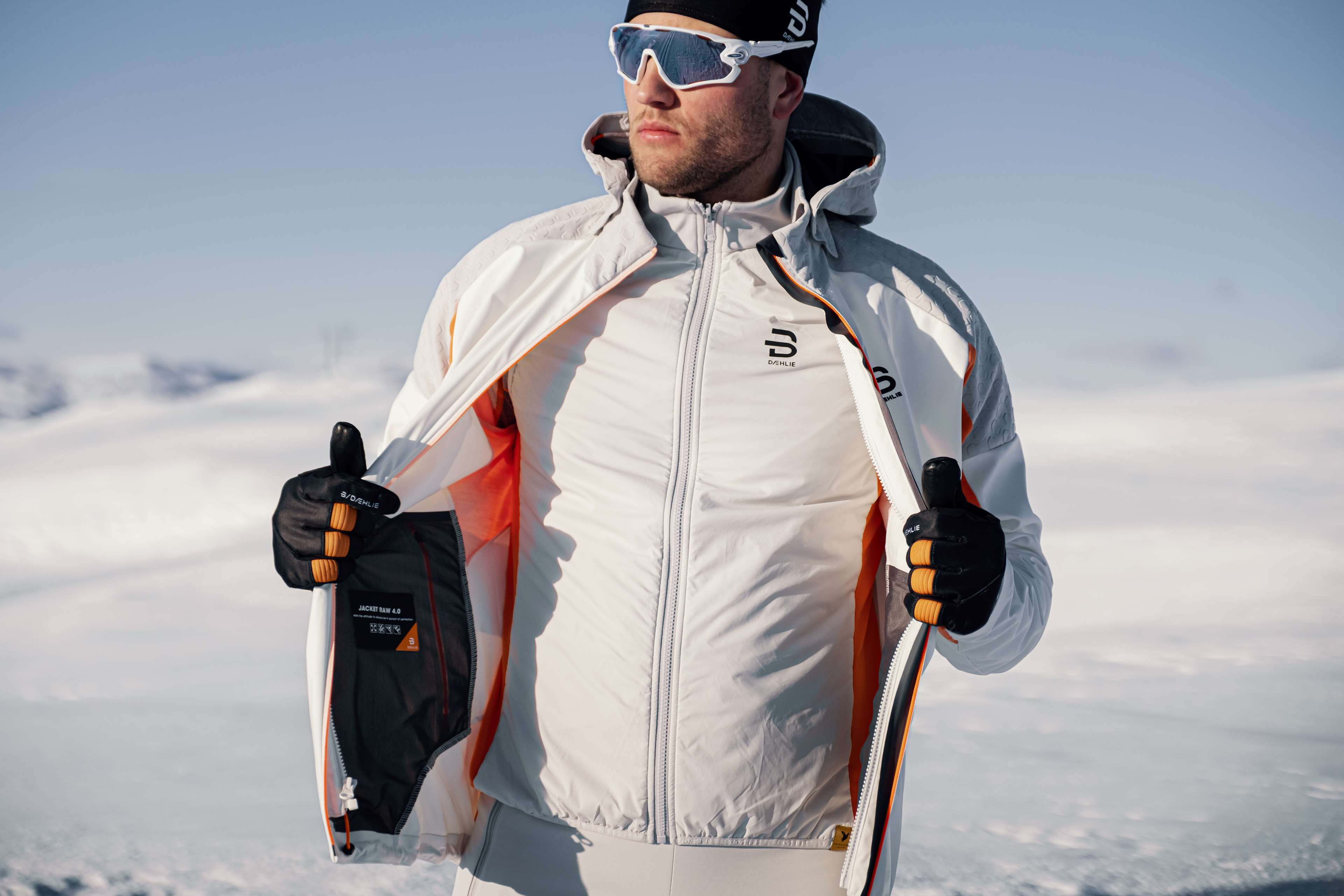 Jacket Raw 4.0 er den råeste teknologien innen langrennsjakker fra Dæhlie, når været krever mer. En multifunksjonell hybridjakke bestående av langrennsjakke med avtagbar vest på innsiden som kan brukes separat. Jakken kommer i et 3-lags softshell materiale med vind- og vannavvisende membran med utmerket pusteevne, som sørger for en optimal temperaturregulering. Hurtigtørkende polyester på innsiden av jakken. Den justerbare hetten er festet med glidelås og kan enkelt tas av og på. Innsiden av kragen kommer i et børstet fleecemateriale som gir ekstra komfort. Under ermene og deler av mansjettene består av et mykt og isolerende ullstretch materiale med god ventilasjon. Bionic Finish Eco® teknologi på stoffets overflate sørger for at lett regn og sludd preller av. Formsydde ermer og strammesnor nederst for best mulig passform. Jakken har to håndlommer med glidelås. Lommene, mansjettene og nederste del av jakken kommer med sveisede sømmer, for å hindre uønsket friksjon. Den avtagbare vesten har et isolerende materiale fra Thindown® i front. Dette er et Italiensk produsert dun i stofformat, noe som gir svært god isolasjon. Det har lav vekt og kan vaskes på normalt program uten at dunet kluper seg. Vesten har et ullstretch materiale i siden som regulerer temperaturen optimalt. Fleece med børstet innside i ryggen gir god isolasjon.
