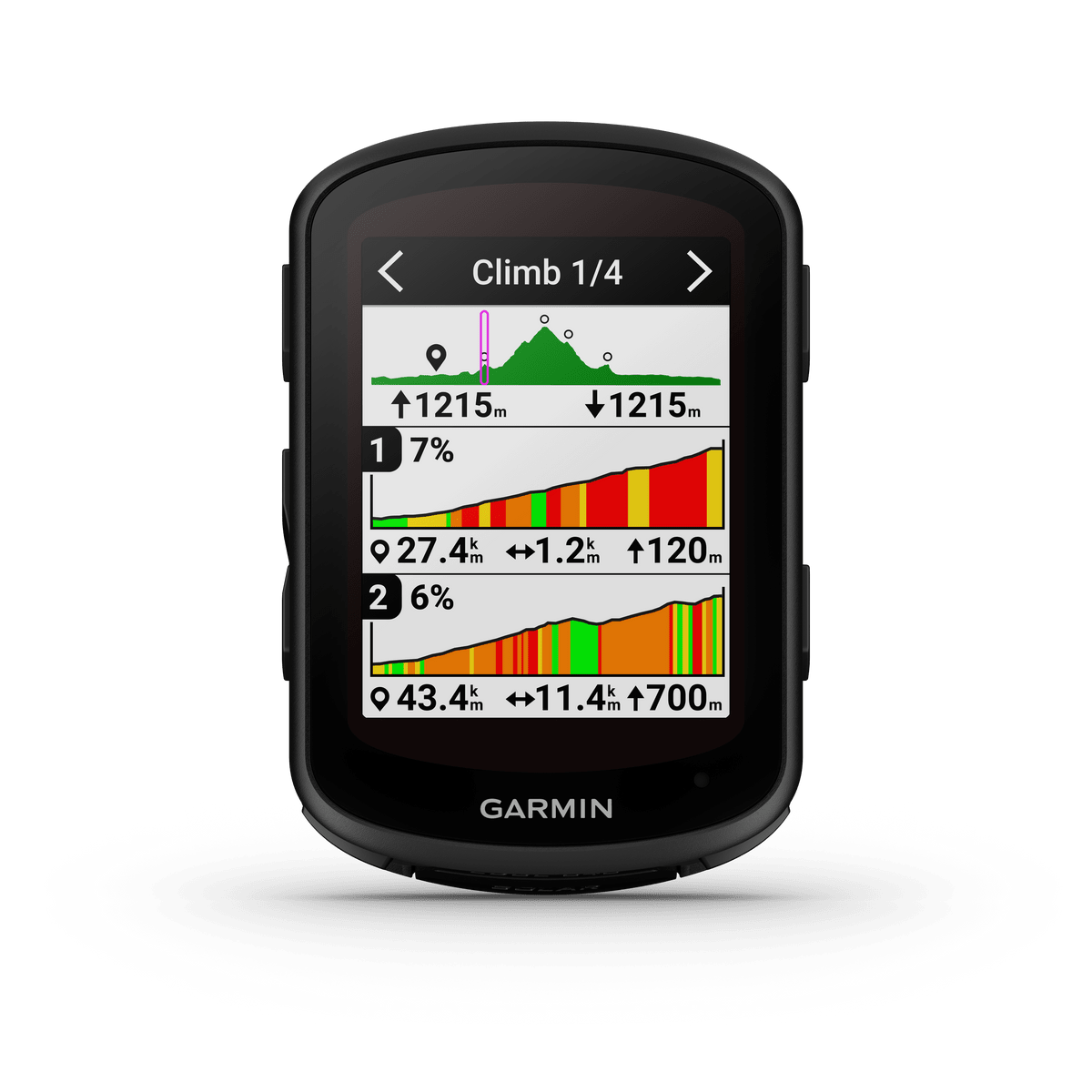 Se den gjenværende stigningen og stigningsprosenten når du sykler oppover for å måle innsatsen din med ClimbPro, som nå er tilgjengelig på hver tur uten at noen løype kreves.