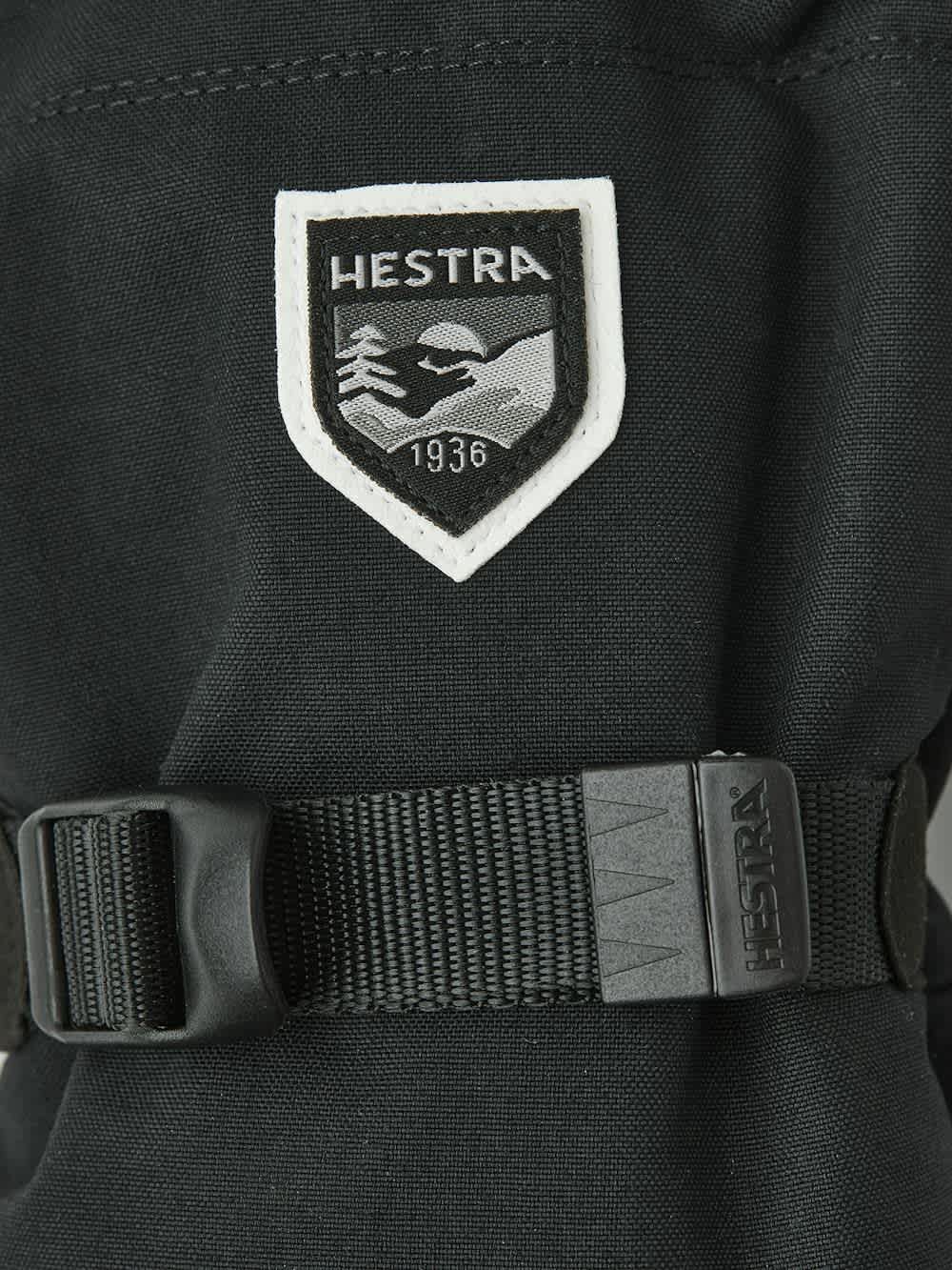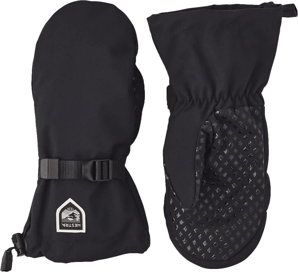 Den har regulerbar rem med spenne rundt håndleddet, strikk nederst på kanten og snølås. Mønsteret i håndflaten gir et bedre grep.