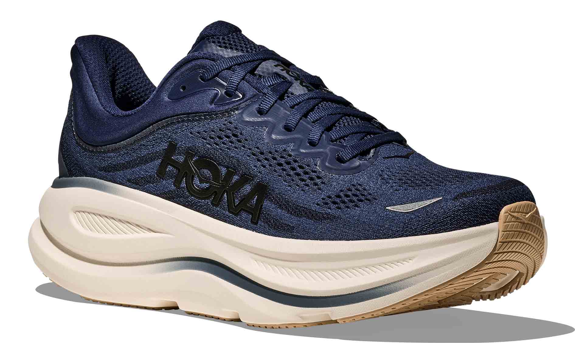 Undersålen er utstyrt med slitesterk gummi, noe som gjør Bondi 9 til en pålitelig følgesvenn på jevne underlag. Den oppdaterte silhuetten gir i tillegg skoen et elegant og moderne utseende.