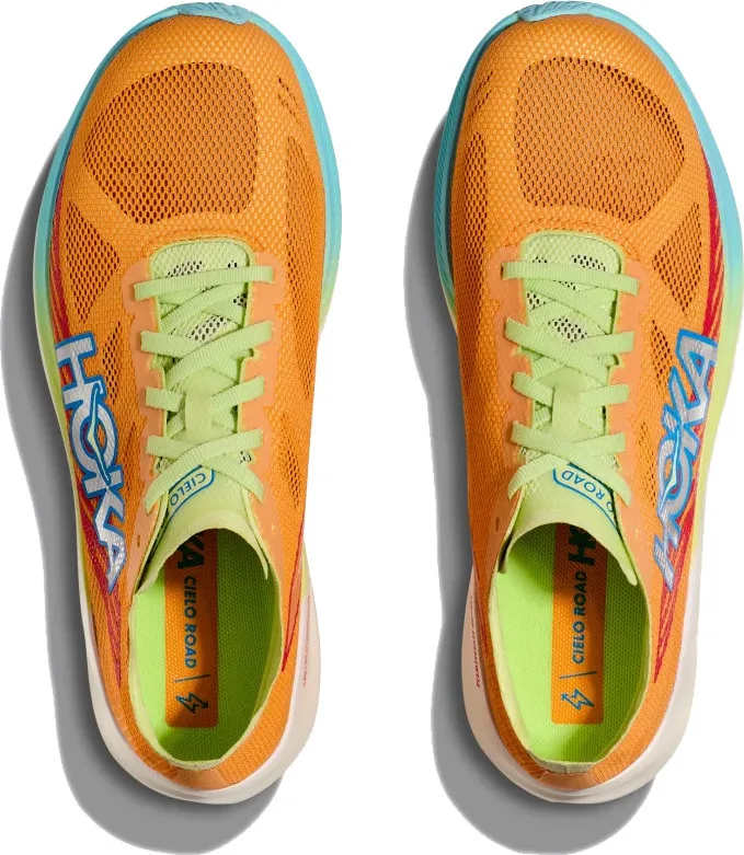 Mellomsålen på Cielo Road er spennende og bobler av overskudd, med et PEBA skum som er svært konkurransedyktig over hele skoen. Selv om sålen er noe tynnere enn andre road-racing sko, gir det en følelse av både god demping og meget god respons. I kjent HOKA-stil er skoen avrundet i forfoten, og denne rockeren bidrar til en fantastisk flyt i stegavviklingen.