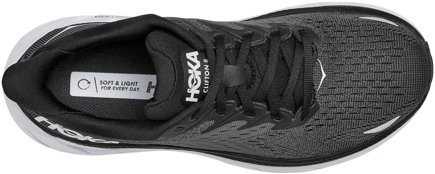 Her får du en komfortabel tunge, pustende mesh-overdel, slitesterk gummisåle og romslig tåboks som på Clifton 7, men den 8. utgaven har et mykere og mer sprettent EVA-skum i mellomsålen som er 15% lettere.
