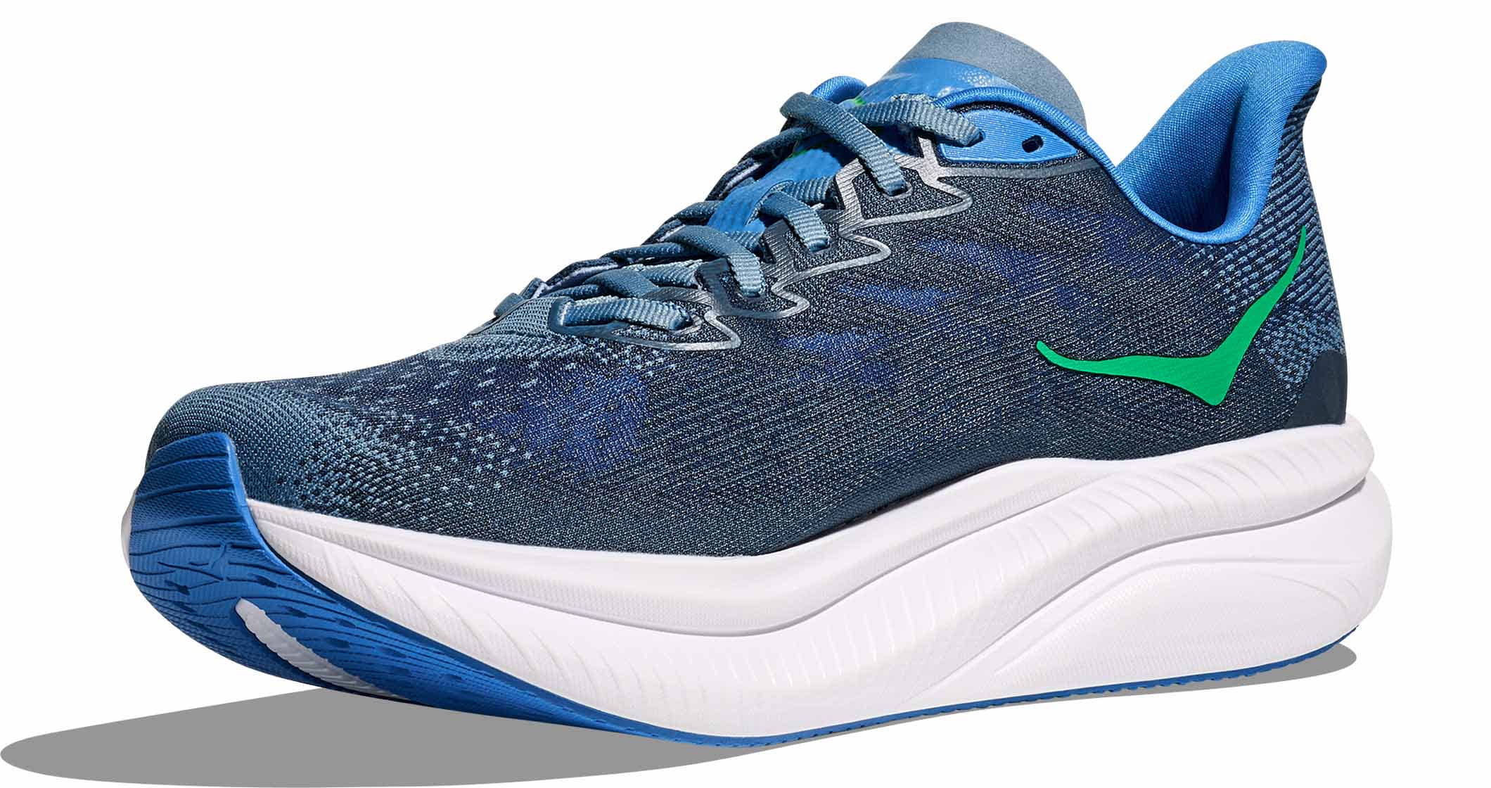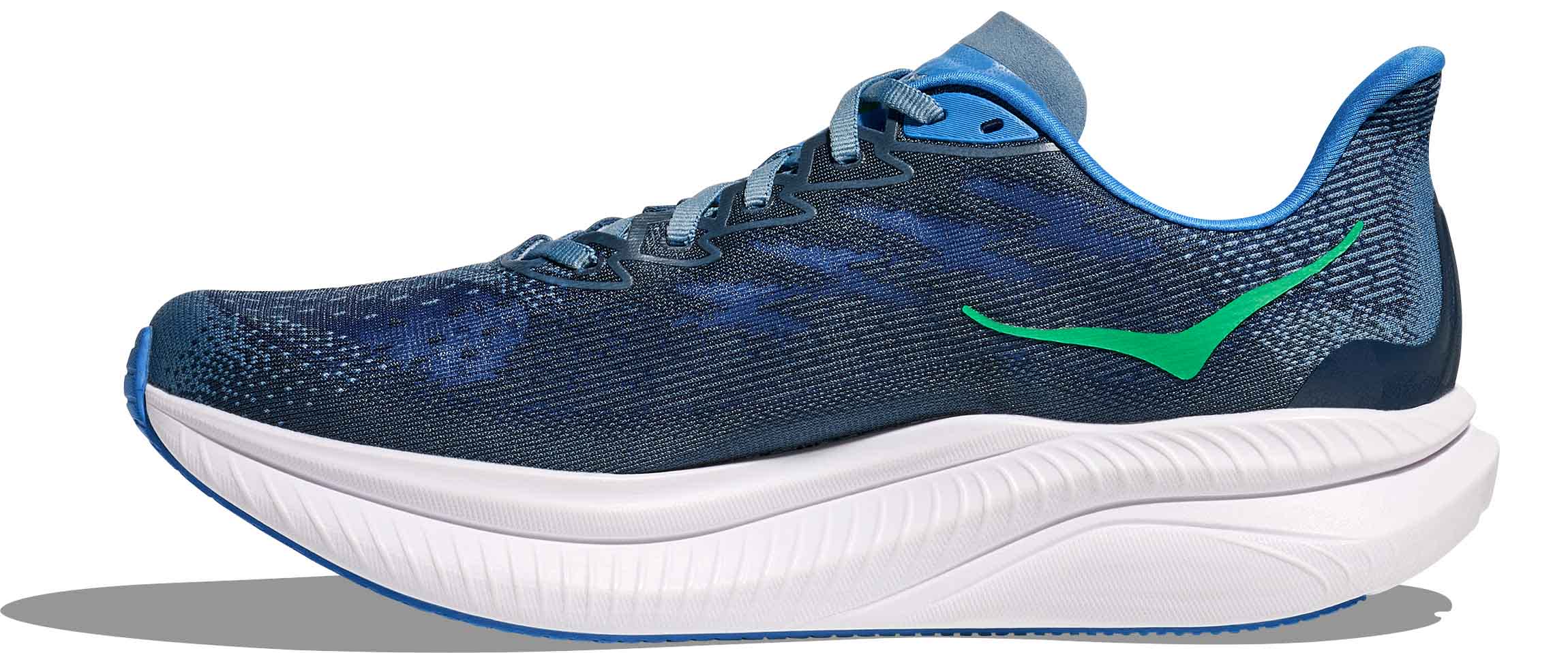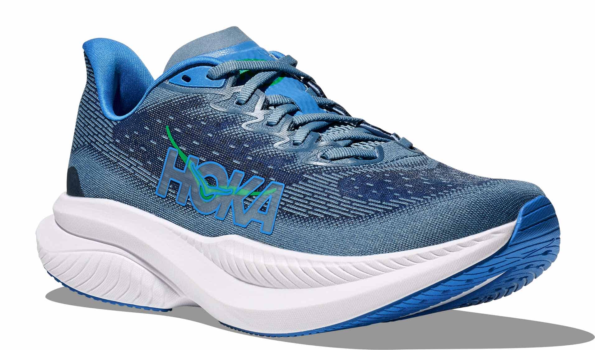 Mellomsålen har fått en oppgradering fra Mach 5 og er nå laget av Super Critical Foam EVA, som er lettere og gir mer energiavkastning i hvert steg. Yttersålen i Durabrasion rubber bidrar til slitestyrke og godt grep, og gjør skoen perfekt for løping på asfalt, tredemølle, bane eller fine grusveier.