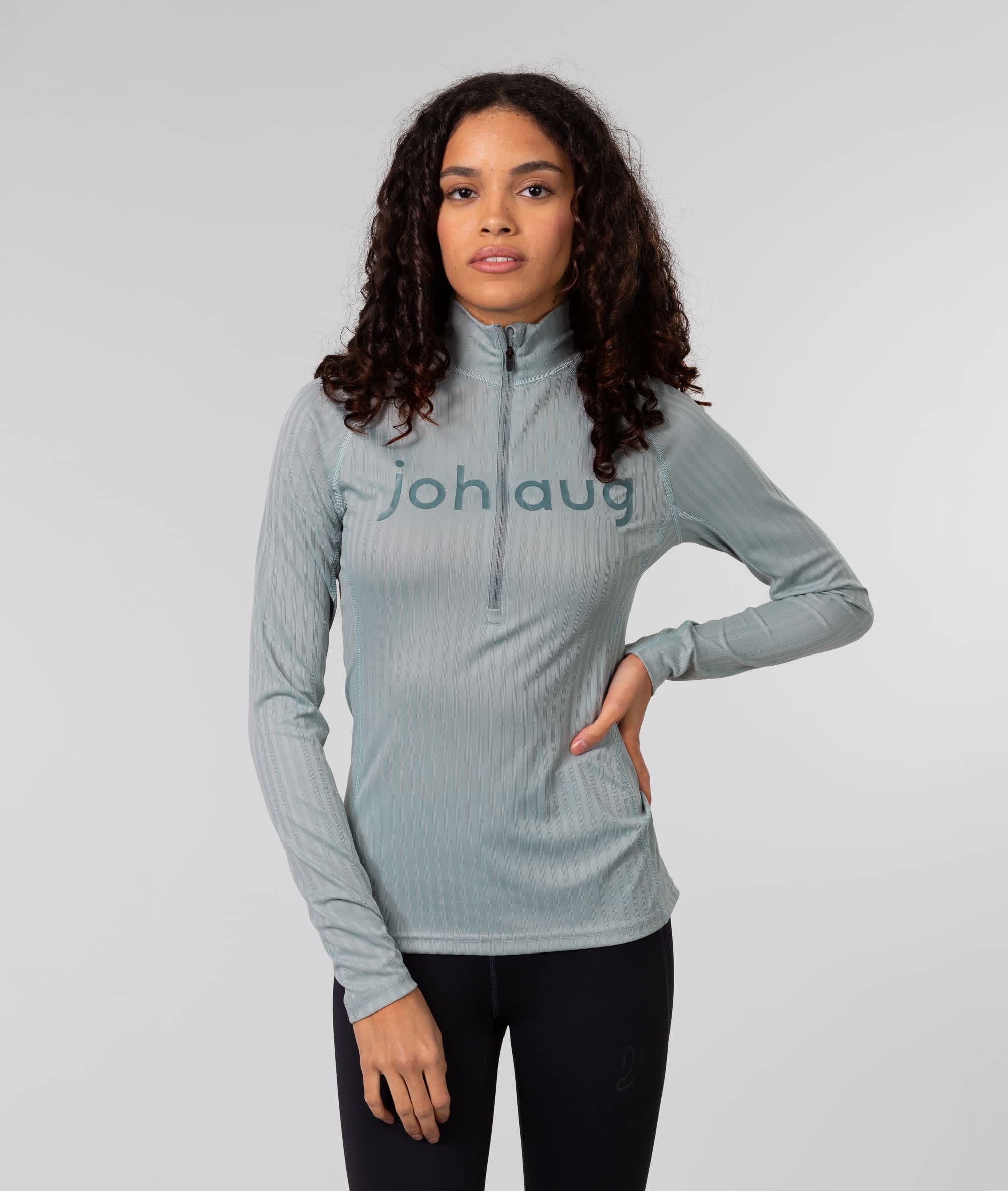 Lett og funksjonell baselayer for trening året rundt Høy hals med glidelås og Dipped in Gold Rib Tech Half Zip med rose gull Johaug-logo på brystet Laget i et lett og pustende materiale Rib-konstruksjonen i stoffet for optimal fukttransport og er hurtigtørkende