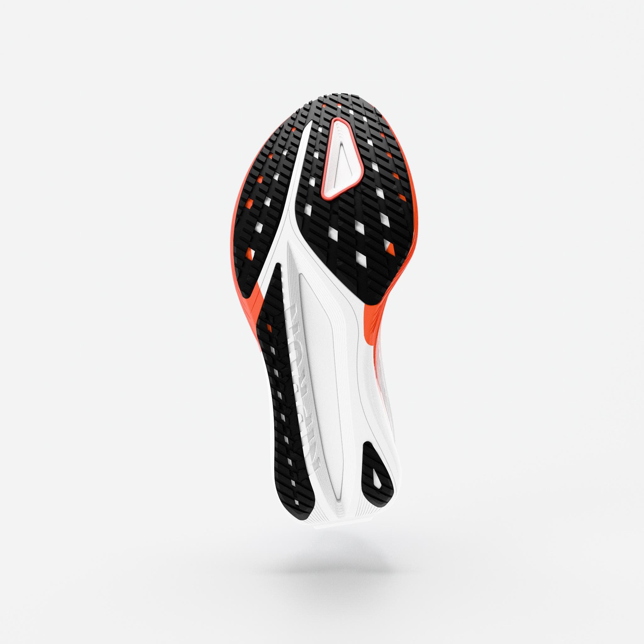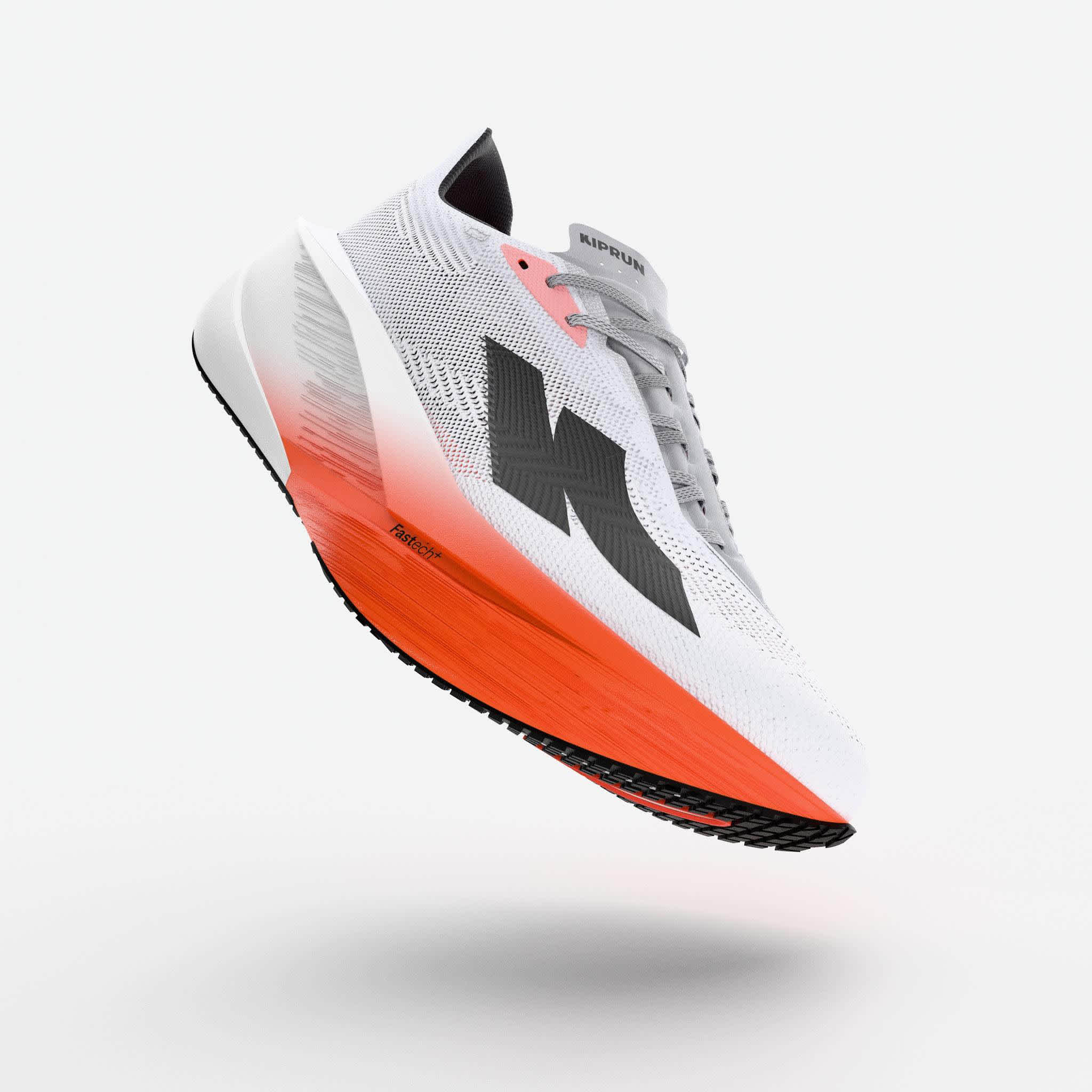 Den todelte Fastech+ mellomsålen består av en overdel i ATPU, som gir myk demping, energiretur og slitestyrke, samt en tynn underdel i CMEVA, som stabiliserer mellomsålen og fungerer som en “falsk plate” for effektiv stegavvikling. Resultatet er en sko som både beskytter føttene og gir kraftfull fremdrift.