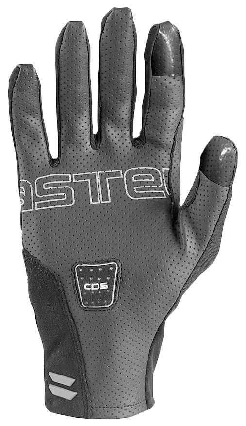 Sykkelhansken har stretchpaneler på sidene som gjør den enkel å ta av og på, og det syntetiske materialet i håndflaten gir et godt grep. Castelli Demping System (CDS) gir ekstra god komfort og beskyttelse, mens mesh-materialet på oversiden og den perforerte håndflaten gir god ventilasjon.