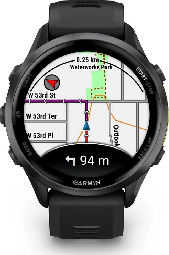 - Kart i farger: Uansett om du løper i bygatene eller sykler på gjengrodde stier, har Forerunner 965 innebygde fargekart som hjelper deg med å holde deg på riktig spor.
