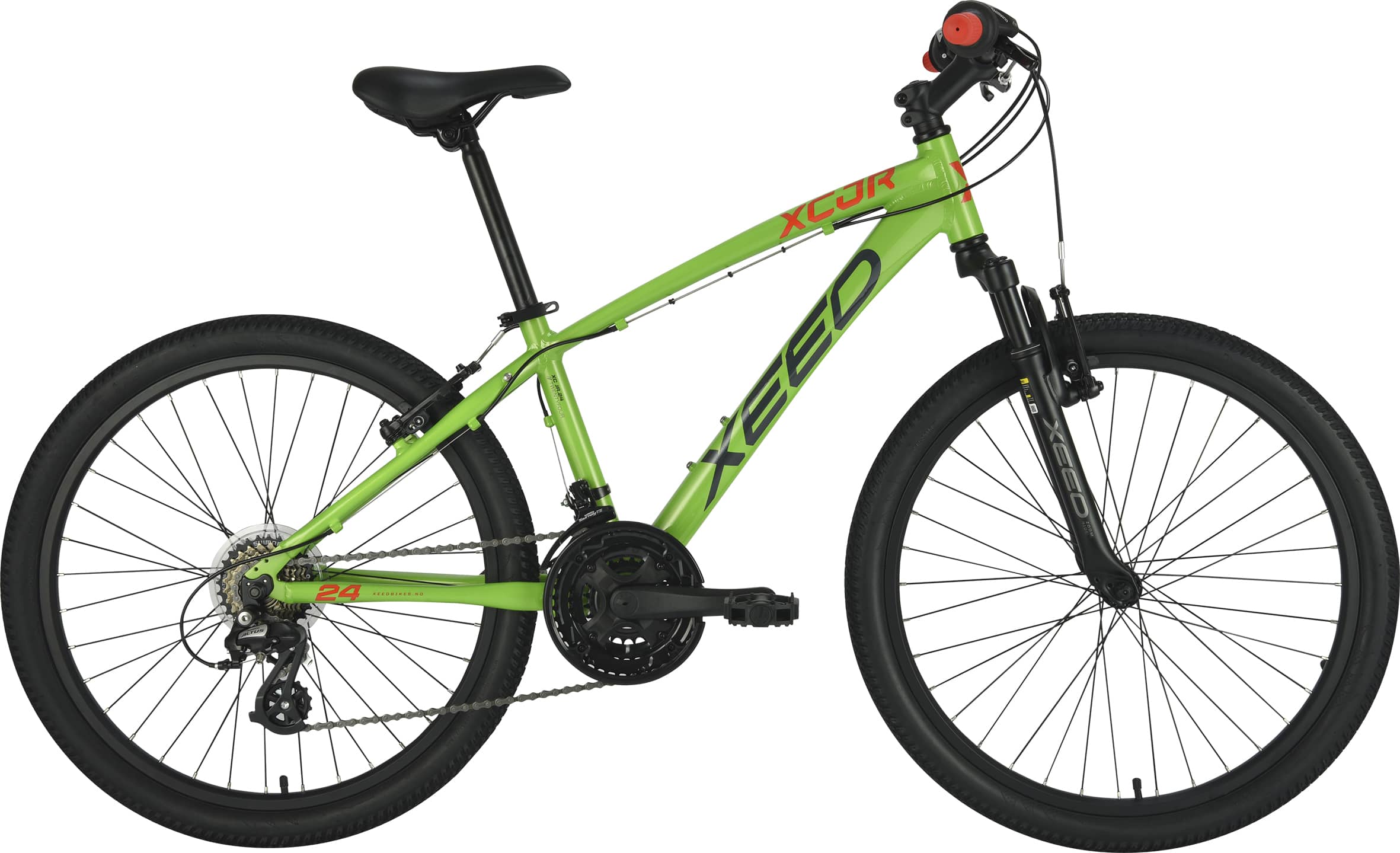 Solid juniorsykkel for skolesykling og fritid med lett aluminiumsramme og gaffeldemper for komfort. 3-delt krank gir lang levetid, mens Shimano Altus 21 gir med Shimano Revoshift girskiftere sørger for at det alltid finnes et gir som passer. Kraftige V-bremser gir god stoppekraft, mens sittestillingen gir god kontroll og overblikk i trafikken.