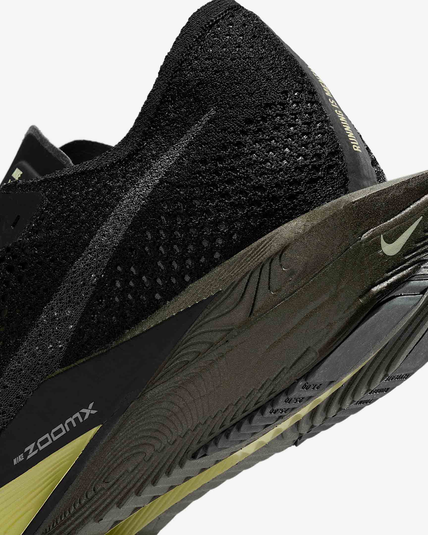 Den utvidede mellomsålen ved hælen reduserer vekten på innsiden av foten og gir en jevnere og mer stabil løpetur. Flyknit-overdelen har strategisk plasserte soner for bedre pusteevne og støtte. Myke, lette materialer gir en behagelig passform som tilpasser seg foten. En oppdatert, tynnere yttersåle i gummi reduserer vekten uten å gå på kompromiss med slitestyrken. Dette gir mer ZoomX-skum under foten og en enda smidigere stegavvikling.