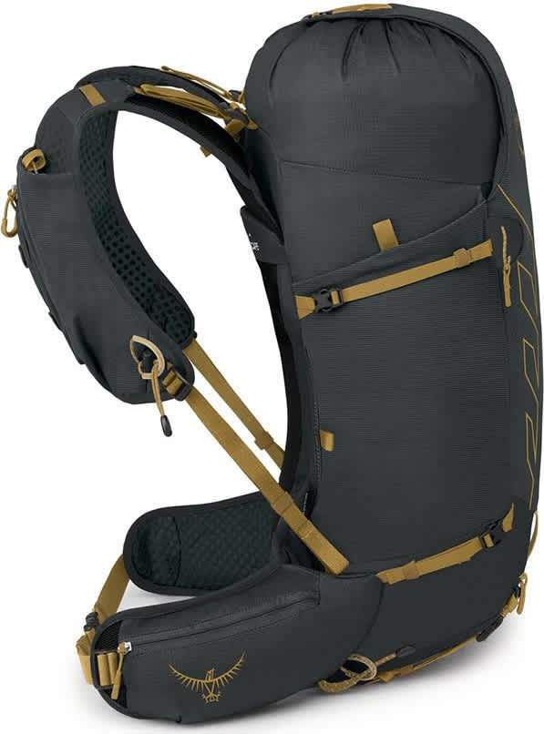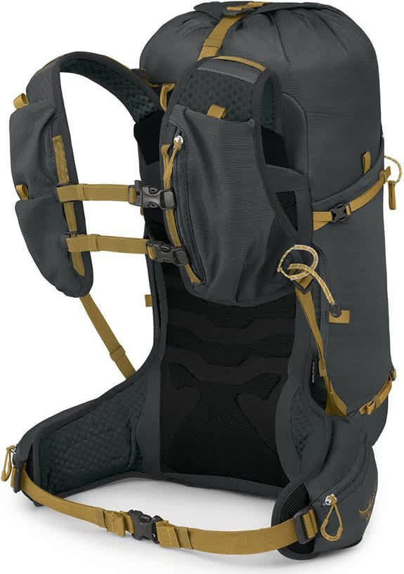 - Kompresjonsstropper på sidene med spenner med sideutløsning kan brukes til å feste utstyr utenpå
