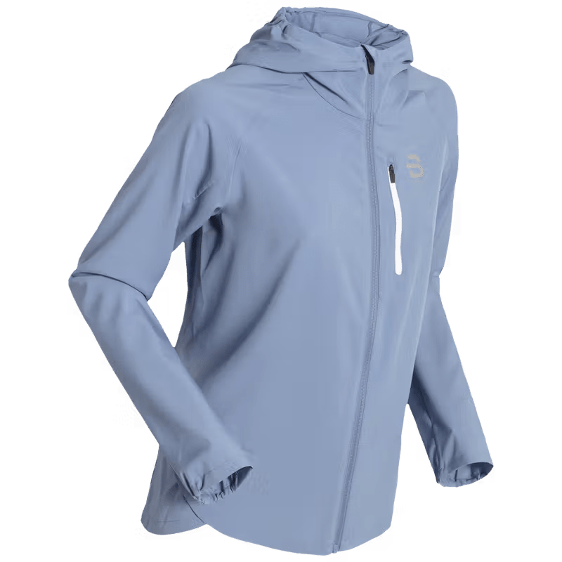 Jakken har YKK-glidelåser, lomme med glidelås på brystet og elastiske mansjetter. Hetten er fast og gir ekstra beskyttelse mot ruskete vær, mens reflekterende detaljer sørger for økt synlighet. Dette er det perfekte valget for den trenger en lett beskyttelse på kjølige treningsdager.