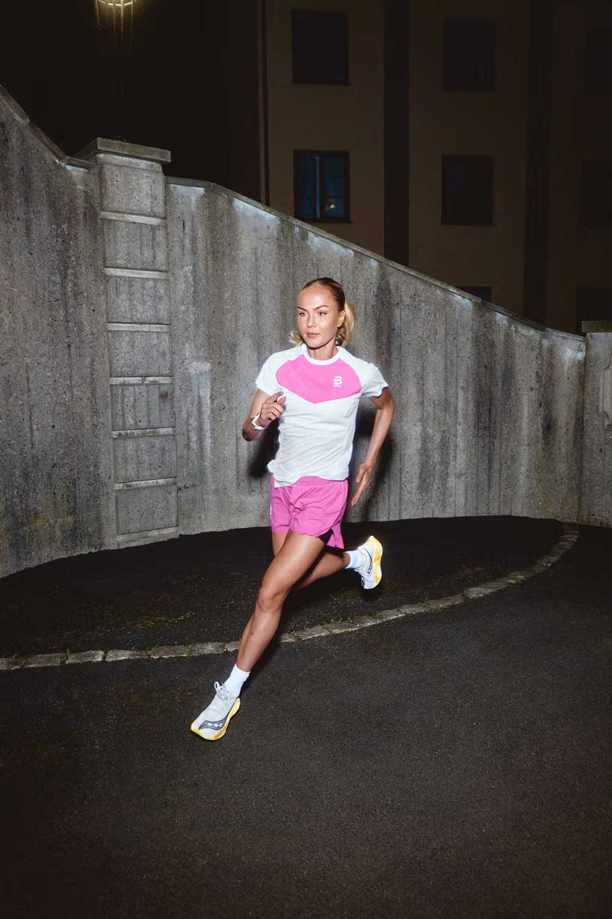 Materialet er mykt mot huden, og har optimale hurtigtørkende og fukttransporterende egenskaper, så du kan føle deg komfortabel gjennom hele økten din. Splitt i siden gir full bevegelsesfrihet, så du kan fokusere utelukkende på å prestere.