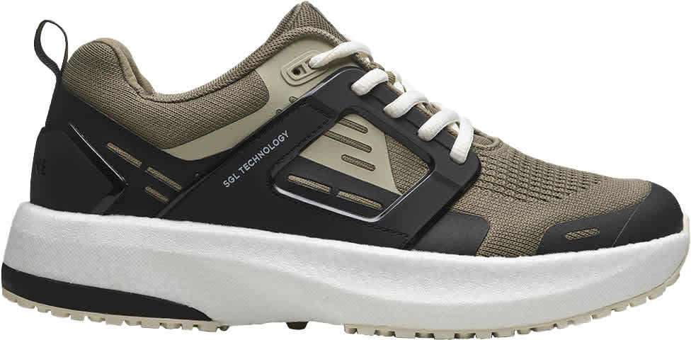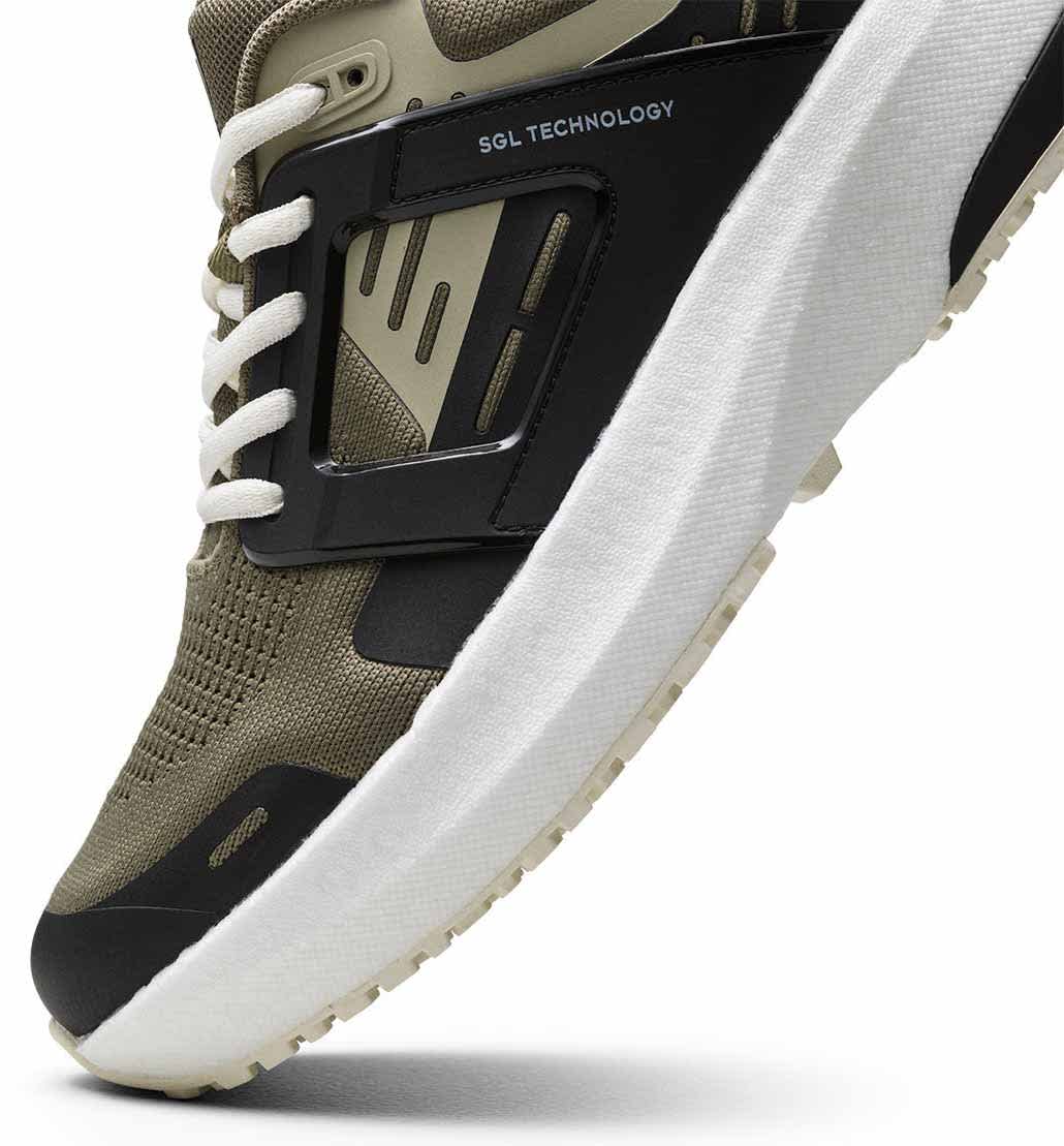 Skoen har en sømløs 3D strikket overdel i elastisk nylon som gir en god passform, lav vekt og gode pusteevner. Materialet er så fleksibelt at det tilpasser seg fotens endringer gjennom dagen.