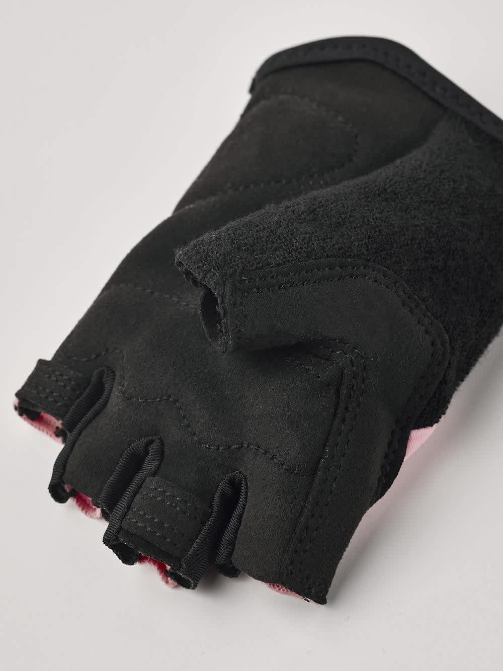 Baksiden er laget i luftig stretch-lycra som gir god ventilasjon, mens håndflaten har lett polstring i slitesterk syntetisk semsket materiale som beskytter mot skrubbsår ved fall. En praktisk tommel med mykt tørkefelt gjør det enkelt å tørke svette underveis. Hanskene har elastisk håndledd for god passform og enkel av- og påtagning.