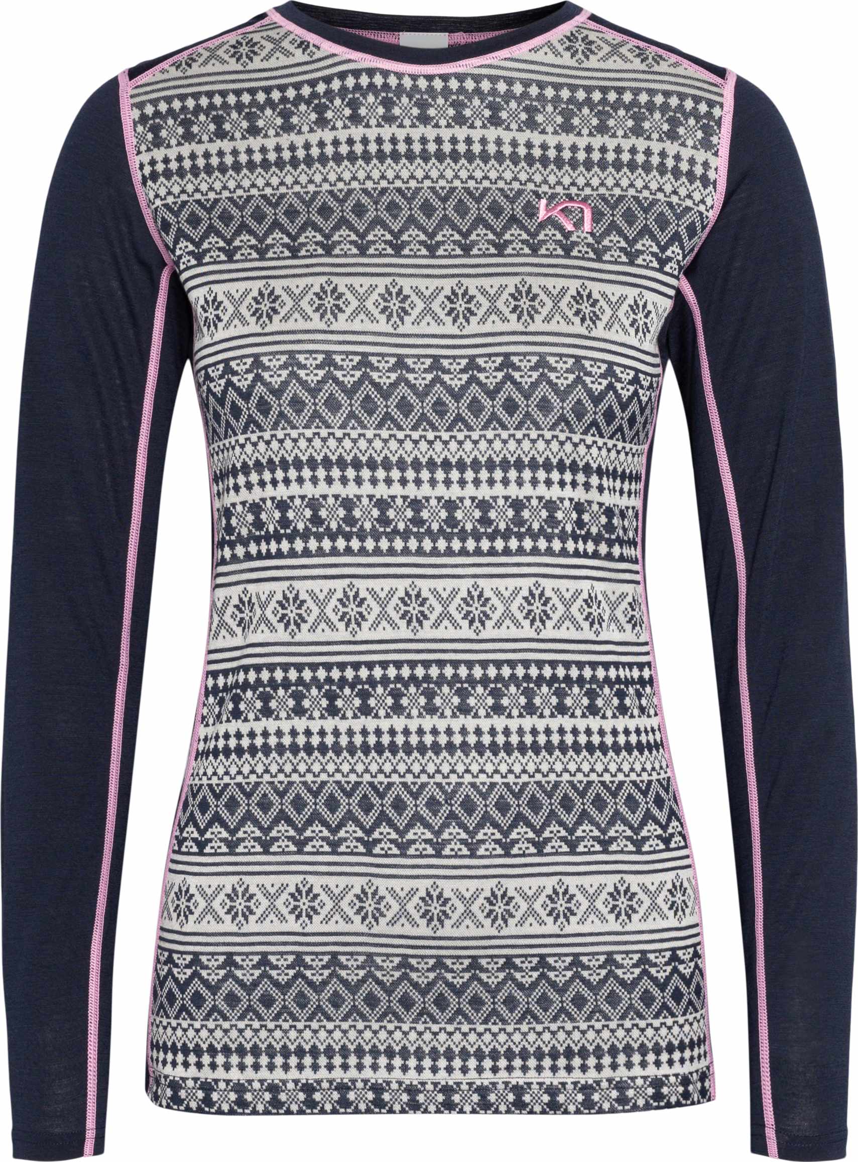 Kari Traa Mina Langermet Trøye er en perfekt kombinasjon av skjønnhet og funksjonalitet. Skjorten, som er laget av en blanding av merinoull og tencel, viser frem Kari Traas tradisjonelle, skandinavisk-inspirerte design samtidig som den benytter bærekraftig-sourcede syntetiske fibre. Resultatet er et slitesterkt og hurtigtørkende plagg som er komfortabelt rett mot huden, og som ser flott ut under alle aktiviteter.