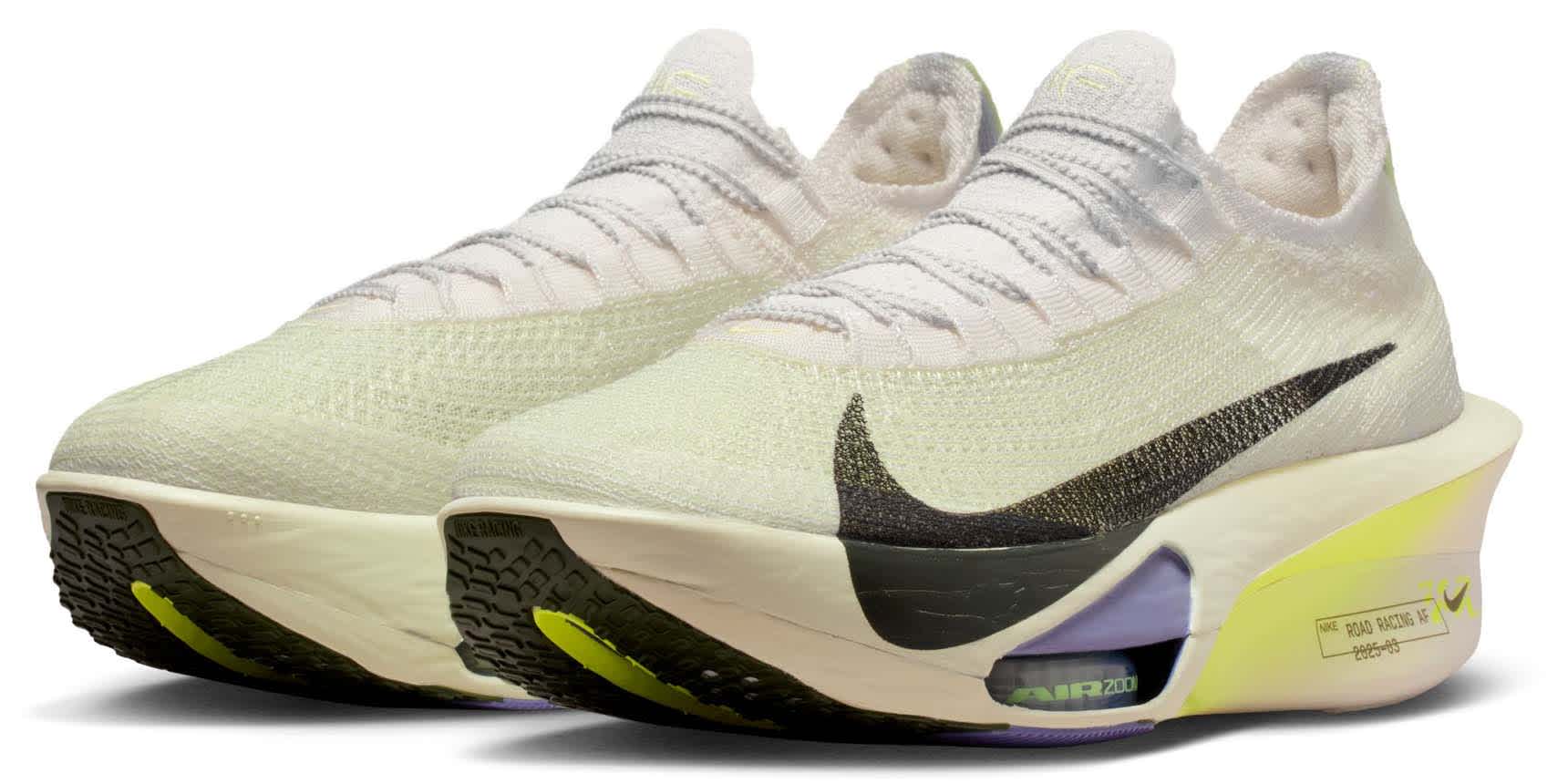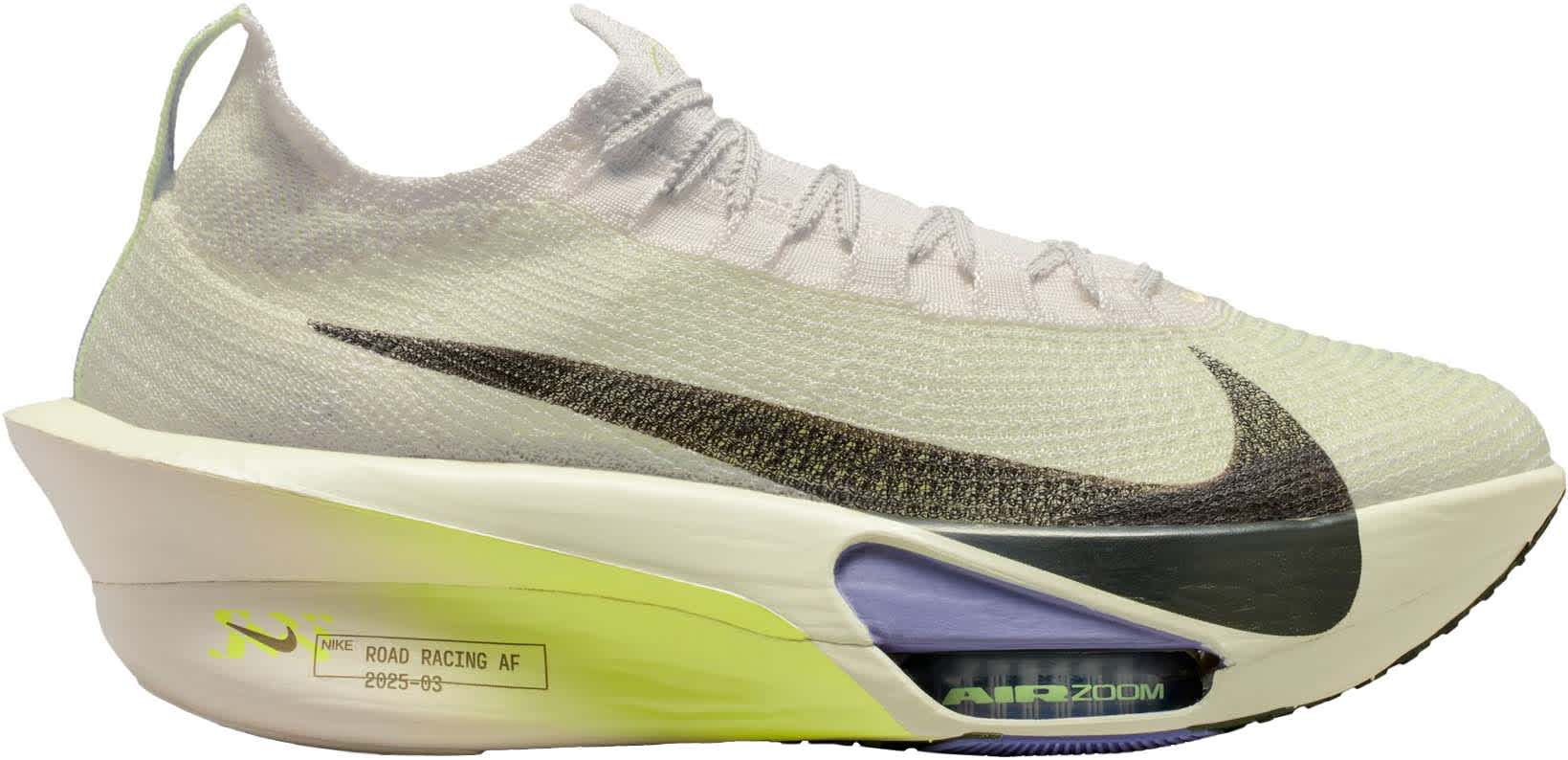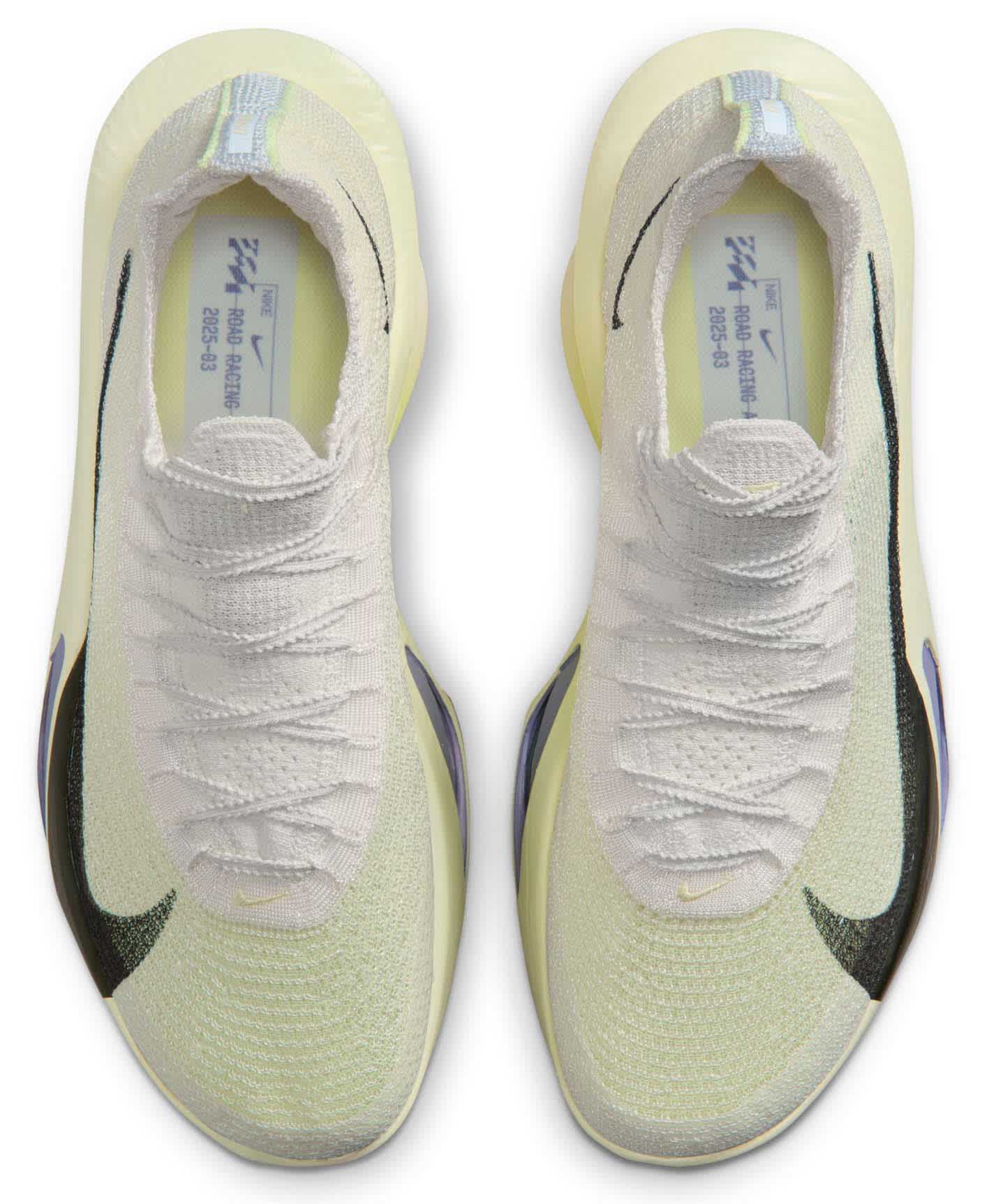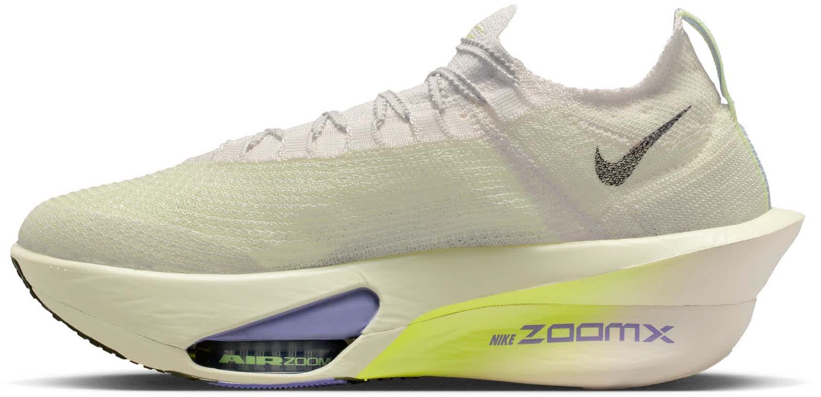 Løpeskoen Alphafly 3 er Nikes letteste Alphafly-sko noensinne. Den har en noe bredere karbonfiberplate for økt stabilitet, en fullt integrert mellomsåle i ZoomX-skum for jevnere overganger, og en helt ny Atomknit-overdel designet for bedre pusteevne og støtte i flere retninger. Hakkene i lissene gir en sikker, men likevel myk snøring, mens den integrerte, strikkede pløsen med luftig polstring bidrar til å redusere presset fra lisser. Nike Alphafly 3 er nøye justert for maratonløping og støtter deg til å nå lengre enn du trodde var mulig.