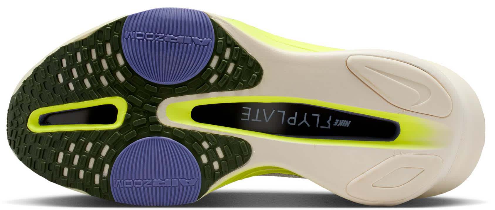 To Air Zoom-enheter i forfoten, kombinert med ZoomX-skum, absorberer og returnerer energi for ekstra kraft i hvert skritt. Den gjennomgående karbonfiberplaten gir fremdrift og jevne overganger mellom stegene, slik at du kan opprettholde høy fart uten å miste stabilitet.