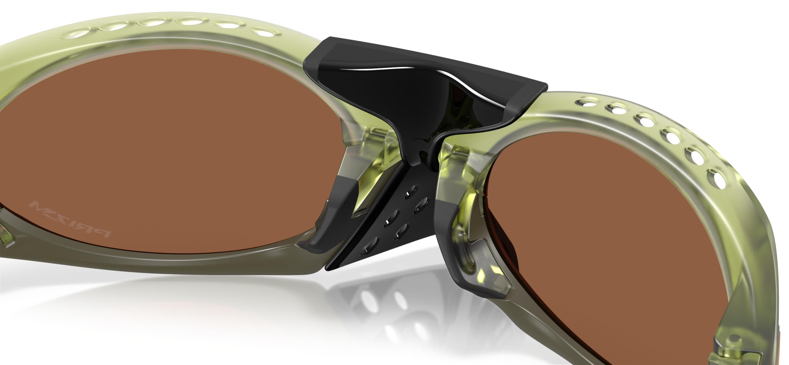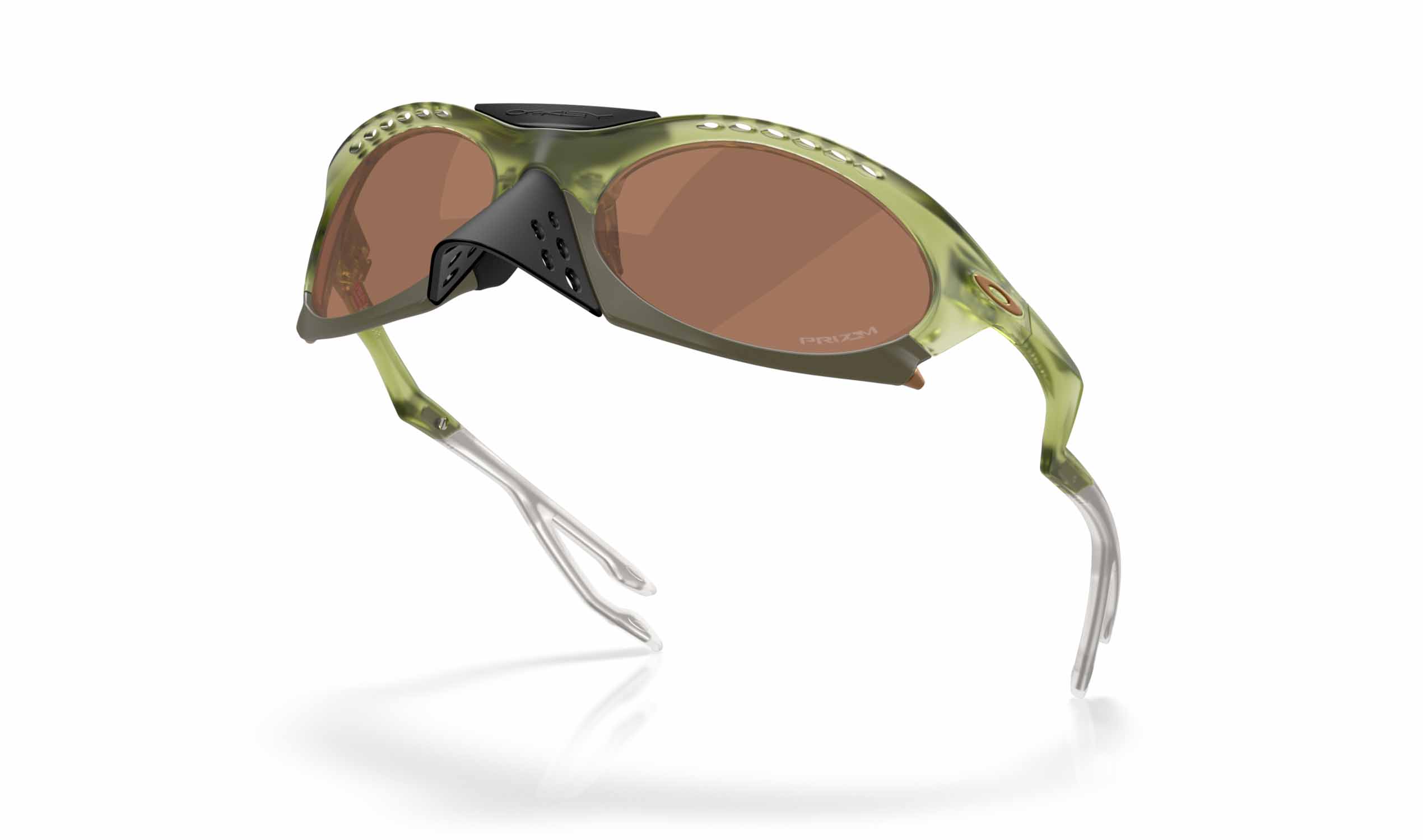 De unike brillestengene deler seg i to "froskeinspirerte føtter", med transparente silikontupper som avslører den årelignende titantrådkjernen for et teknisk og lekent uttrykk. Den avtagbare neseskjermen lar deg enkelt tilpasse brillene til humør og miljø, mens Switchlock™-teknologien gjør det raskt og enkelt å bytte linser.