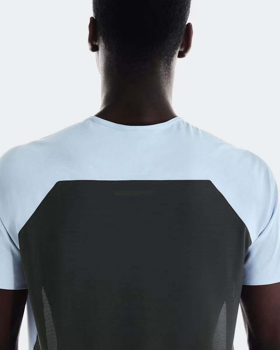 Denne løpe-T-skjorten kombinerer ekstremt lett beskyttelse med pusteevne og bevegelsesfrihet.