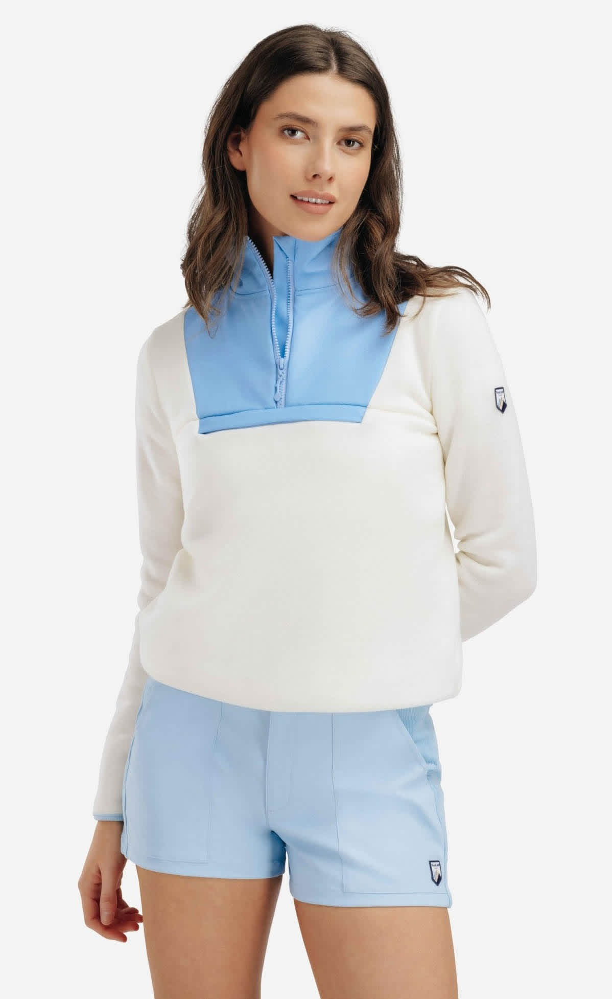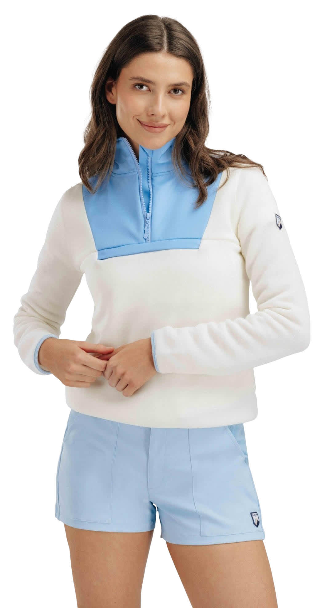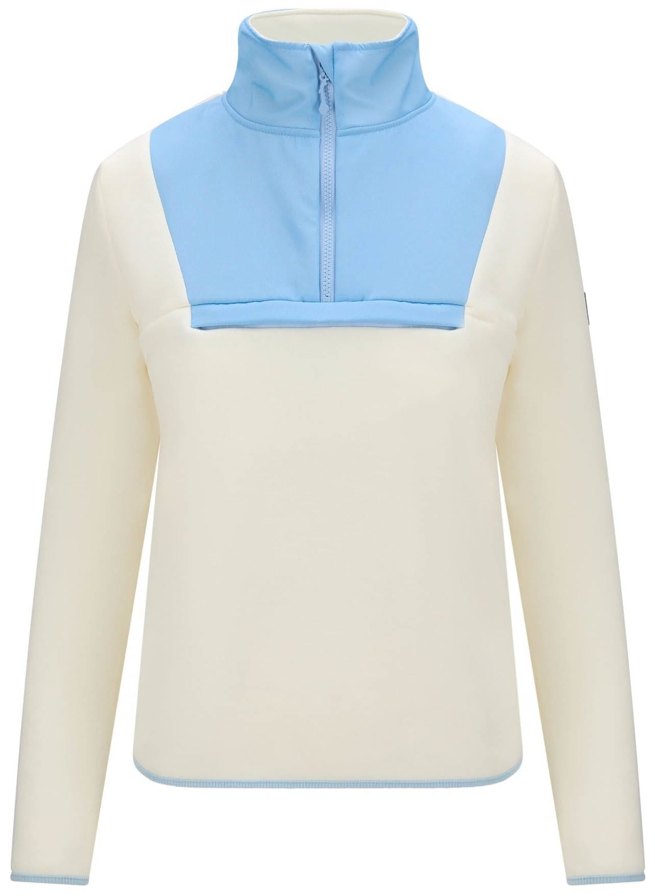 Denne pullover-fleecen for dame er laget av 100% ull og har en myk børstet innside som gir ekstra varme og komfort. Den kombinerer funksjonalitet med eleganse, med kontrastfargede patcher rundt halsen og brystet som gir et moderne og unikt preg. Fleecen fungerer perfekt som et mellomlag på kjølige dager eller som et lett ytterlag på mildere dager. Kombiner den med andre plagg fra vår kolleksjon for en tidløs og komplett look.