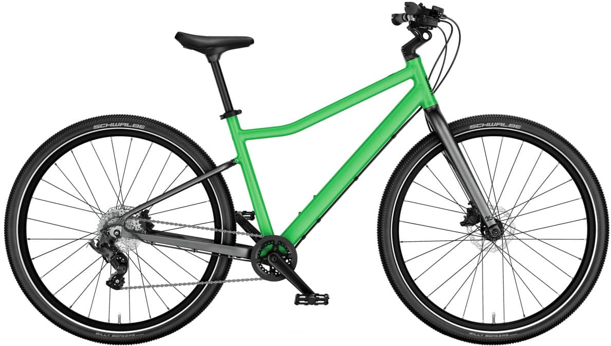 woom EXPLORE er utstyrt med kraftige, justerbare skivebremser som gir trygg og effektiv bremsing tilpasset barn. Den gummibelagte trigger-girskifteren fra microSHIFT sørger for presis og smidig giring, mens Schwalbe Billy Bonkers-terrengdekkene gir lav rullemotstand og maksimalt grep på både asfalt og sti.