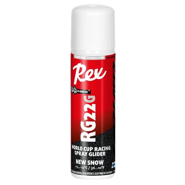 Rex N- Kinetic Rg Block er en fluorfri smøring i sprayformat, som takket være den nye N-Kinetic-teknologien gir skikkelig god glid og utmerket vannavvisning. Teknologien benytter seg av nanopartikler som danner en hydrofob overflate som er svært vannavstøtende, noe som gir bedre smussavvisning. Sprayen er utviklet for å være den fluorfrie ekvivalenten til Rex HF-smøring.