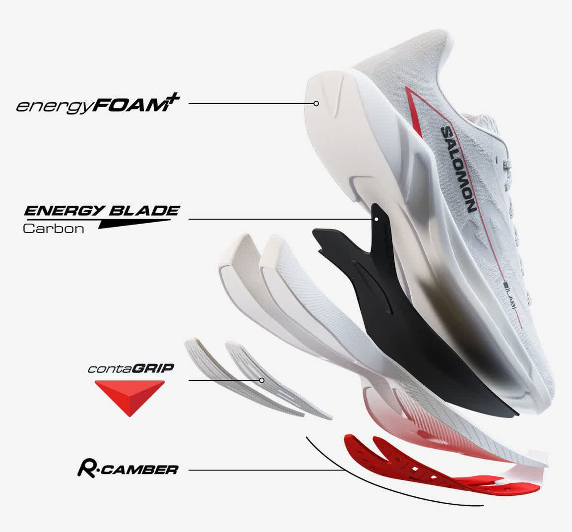 - Optimalisert bevegelse, kraftig fraspark: En unik geometri kombinert med energyBLADE-karbon over hele lengden, spesielt tilpasset for løpere som søker optimale tider og strømløse overganger.