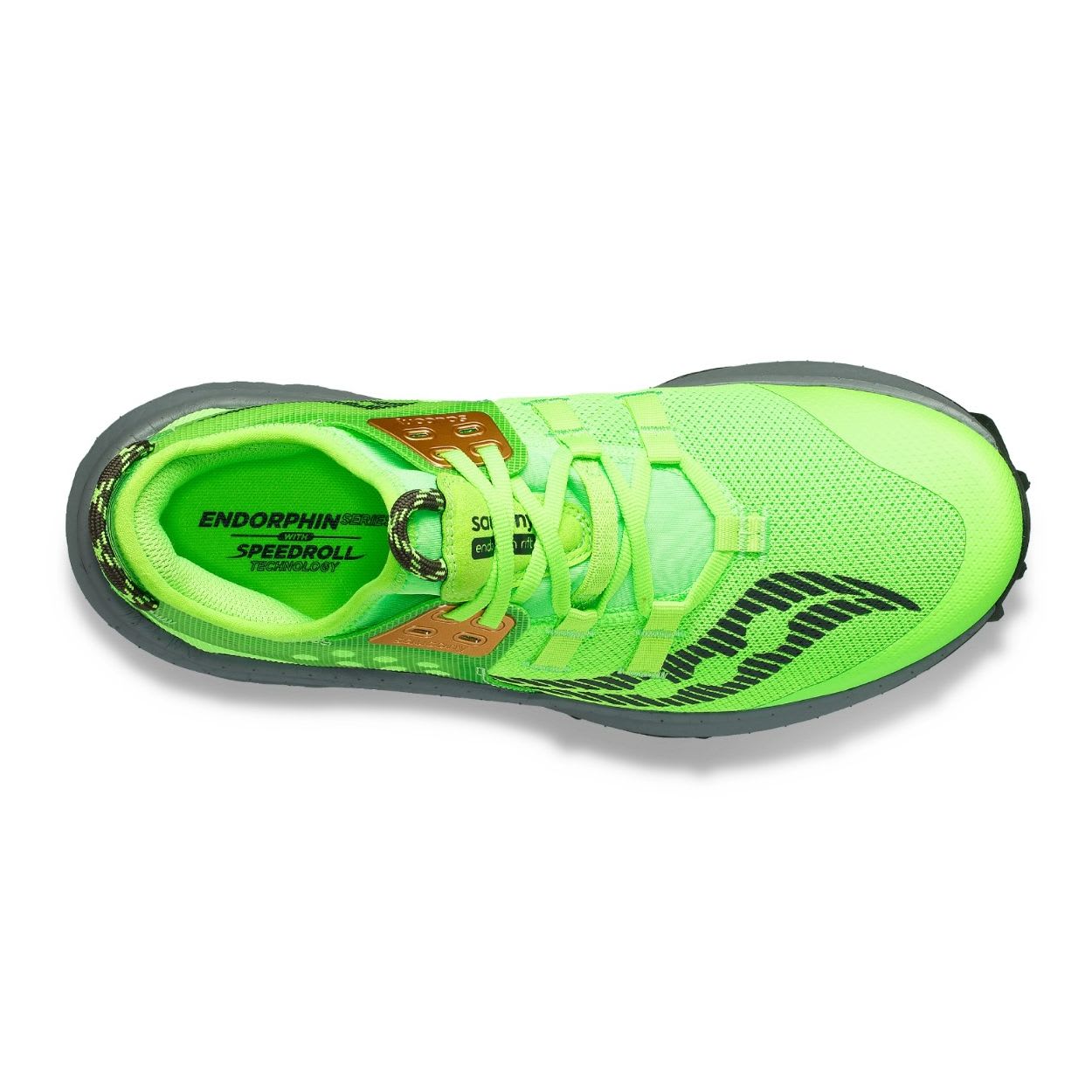 Saucony Endorphin Rift er en svært allsidig terrengsko. Endorphin Rift er laget med Sauconys toppskum, PWRUN PB, som er veldig mykt og gir energi tilbake. Skoen har SpeedRoll-teknologien, som alle de andre skoene i Endorphin-serien. Det er en nøytral løpesko uten innebygd plate, noe som betyr at den er litt mer fleksibel og bevegelig. Endorphin Rift har imidlertid en beskyttende steinplate i mellomsålen som gjør den i stand til å takle tøft terreng. Overdelen på Endorphin Rift har et sokkelignende design. Skoen har en hælhøyde på 6 mm og grove og dype knotter under sålen.