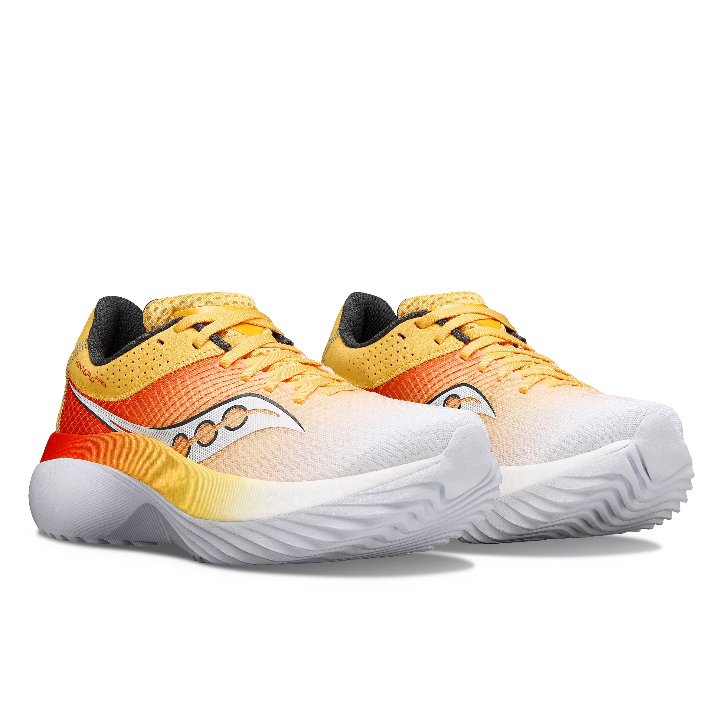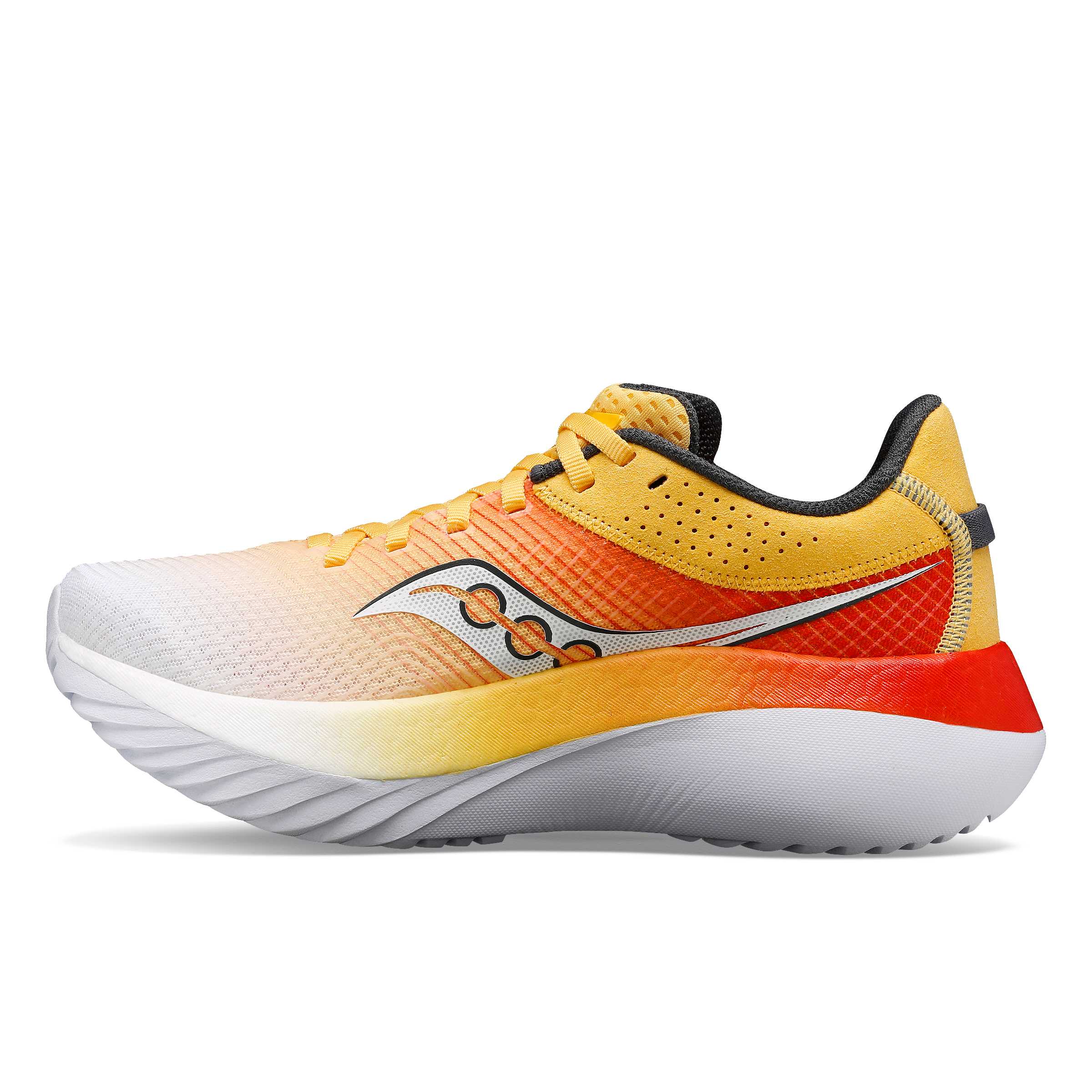 Saucony Kinvara Pro benytter en kraftig mellomsåle som integrerer to forskjellige typer skum. Mot fotbladet er det PEBA-baserte PWRRUN PB-skummet som leverer en ideell balanse mellom støtdemping og respons, mens PWRRUN-skummet skaper en stabil og holdbar plattform.