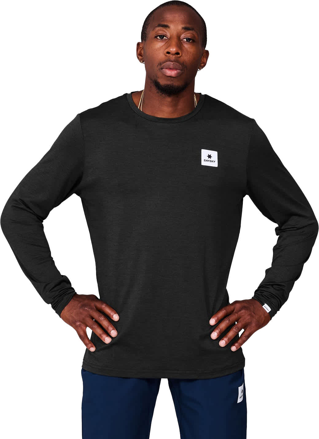 SAYSKY Clean Pace Long Sleeve er en funksjonell løpetrøye for menn, laget i svart resirkulert polyester. Den har en klassisk, ren stil med små vevde SAYSKY-logoer på brystet og ryggen. Trøyen har normal passform og er utviklet for å gi optimal komfort og ytelse – perfekt for både trening og konkurranse.