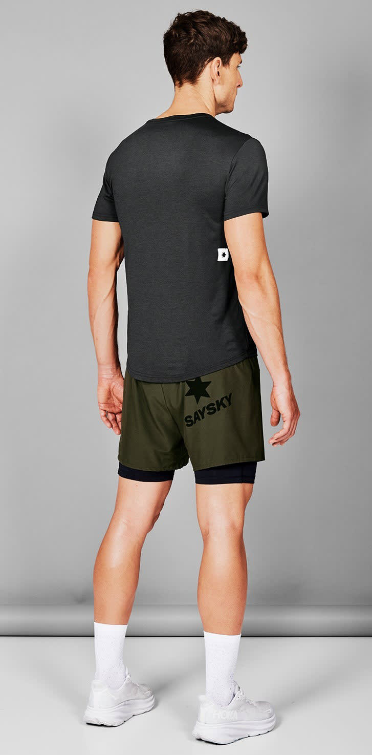 SAYSKY Clean Pace T-skjorte for menn er en kortermet løpetrøye i melert blå, laget av resirkulert polyester. Den har et rent og stilrent design med vevd SAYSKY-logo på ryggen og ermet i hvitt. Med en normal passform, supermykt stoff og svettetransporterende egenskaper, er dette en ideell t-skjorte for både trening og konkurranse.