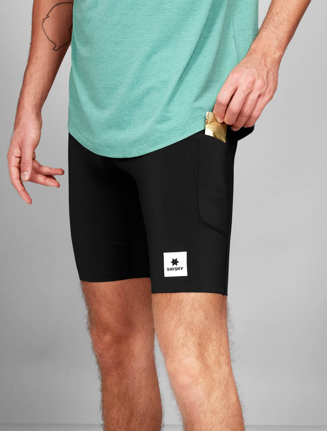SAYSKY Combat+ Short Tights 9" er en kort og funksjonell løpetights for menn, designet for høy ytelse og komfort. Laget av resirkulert polyester med SAYSKYDRY-teknologi som holder deg tørr og komfortabel under hele økten. Med praktiske lommer og tettsittende passform er dette et perfekt valg i overgangssesongene, som et alternativ til lange tights.