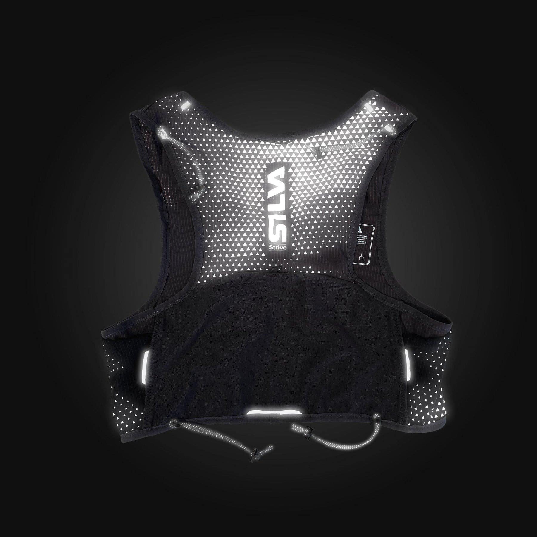 Strive Fly er laget i mykt ripstop-nylon og ventilerende mesh som nesten ikke merkes på kroppen. Refleksmønsteret gir økt trygghet i mørket, og den integrerte fløyten gir ekstra sikkerhet på lengre turer.