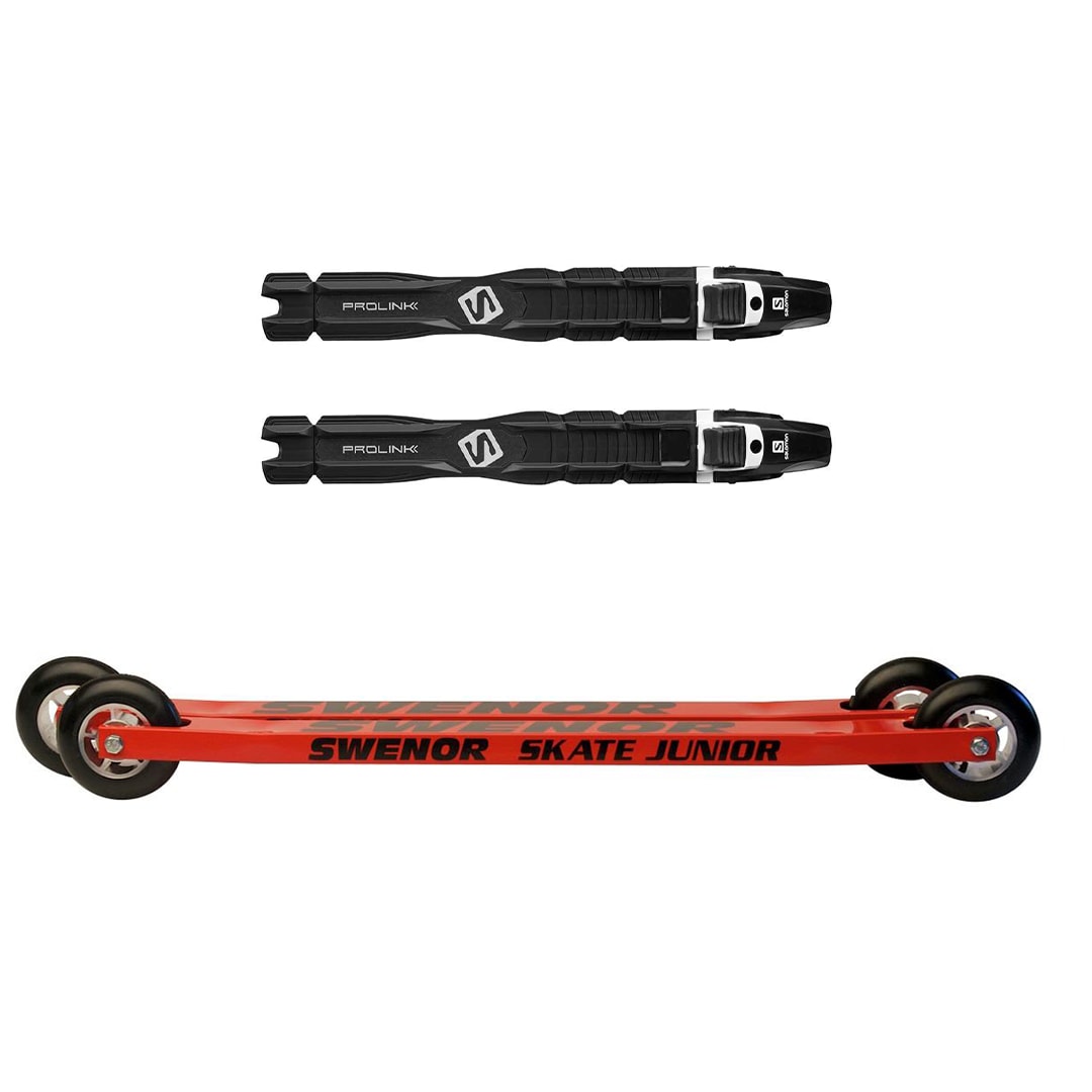 Swenor Skate Junior er en rulleski som passer godt for de yngste. Lettrullende gummihjul gjør det lettere å bruke dem. Rulleskien leveres med NIS-plate for enkel motering av bindinger.