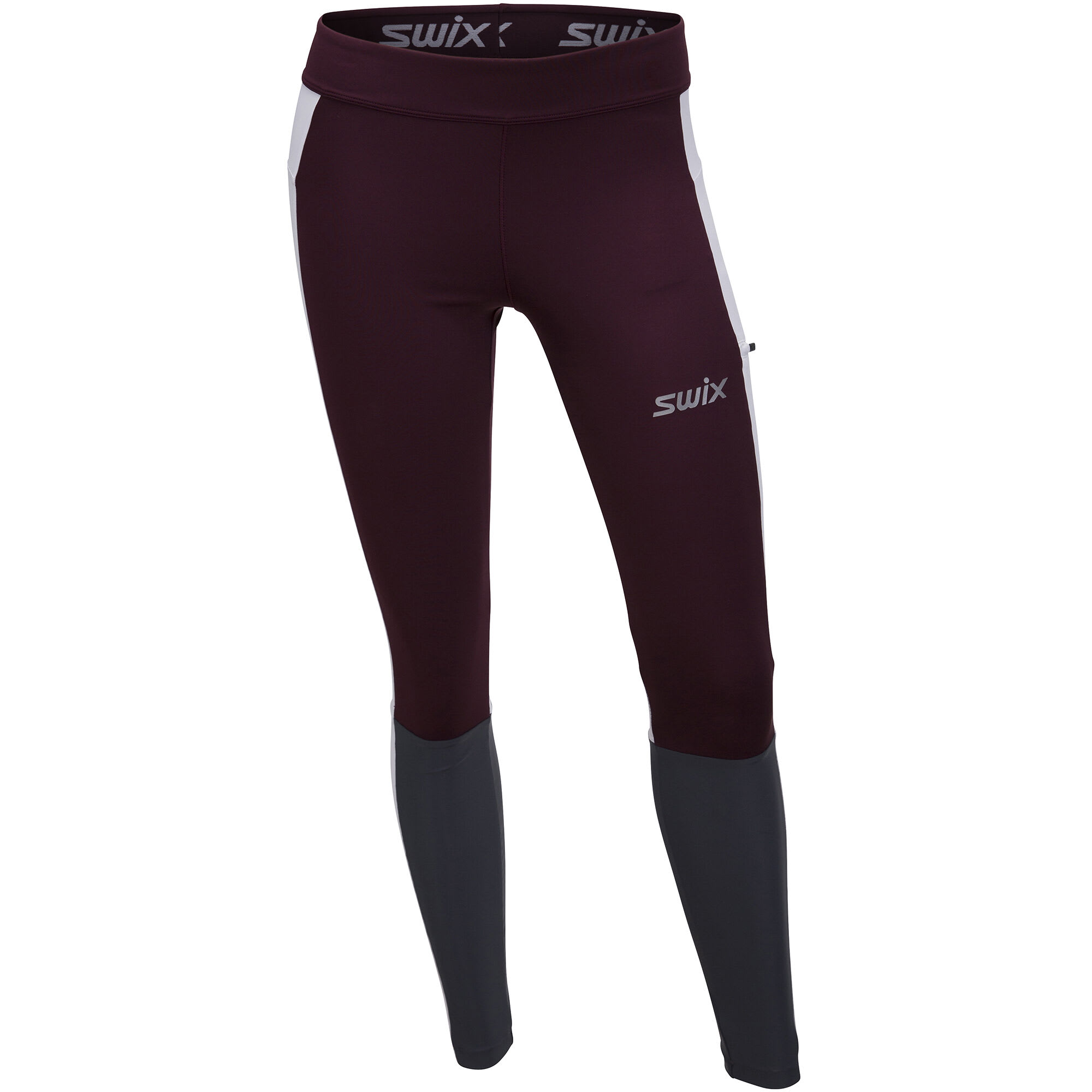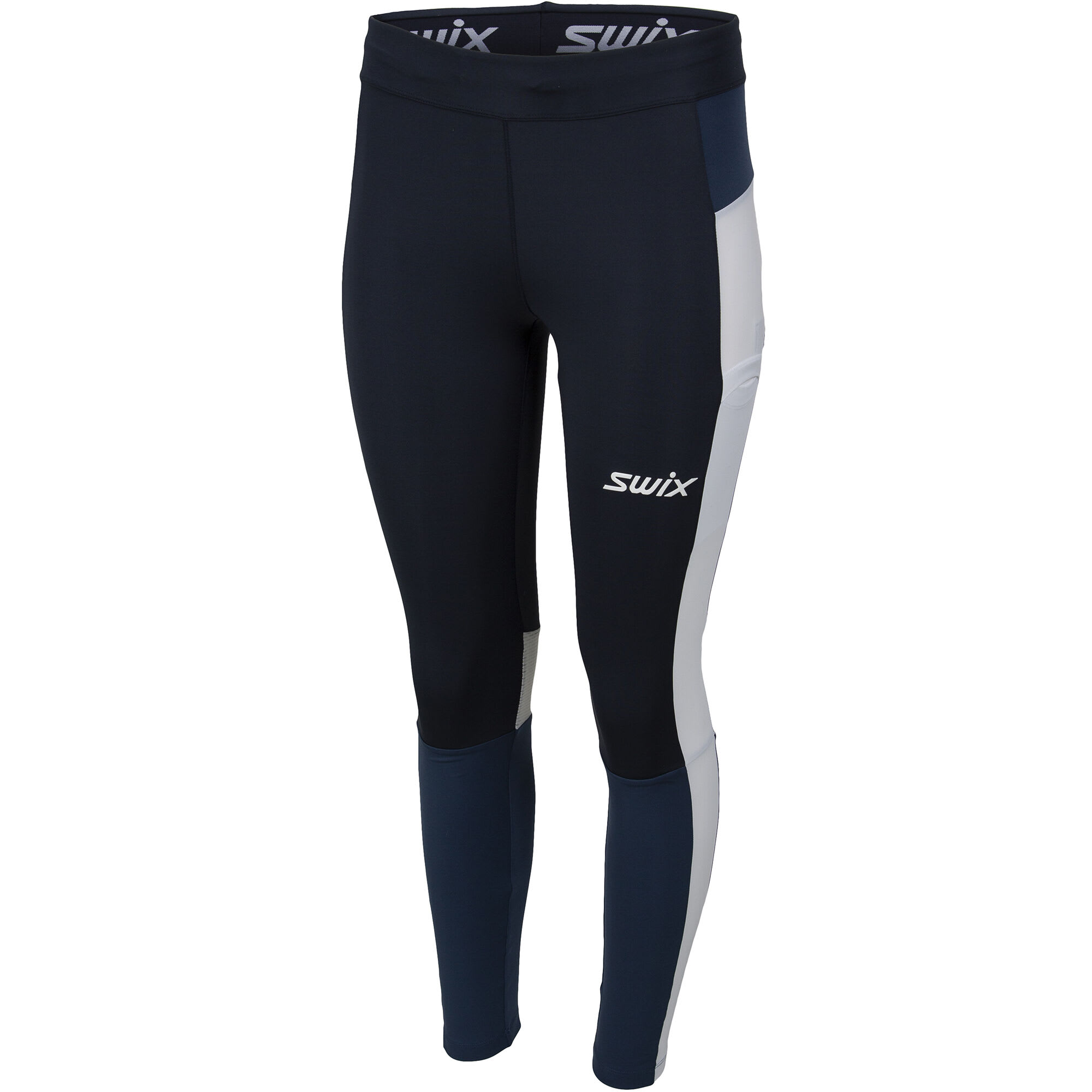 Tights til dame i høy kvalitet med optimalisert passform. Perfekt løpetights eller treningstights. Tightsen er laget i et elastisk stoff med tykkelse som gjør at den sitter godt på kroppen, og har høy slitestyrke. Den brede linningen med strikk sitter svært behagelig i livet. En praktisk lomme er plassert på siden av låret. Denne plasseringen fører til at ting i lommen ikke drar tightsen nedover. I knehasene er det plassert meshmateriale for en effektiv transport av fuktighet. Swix logo i refleks foran og bak, samt refleksbånd på baksiden av leggene.