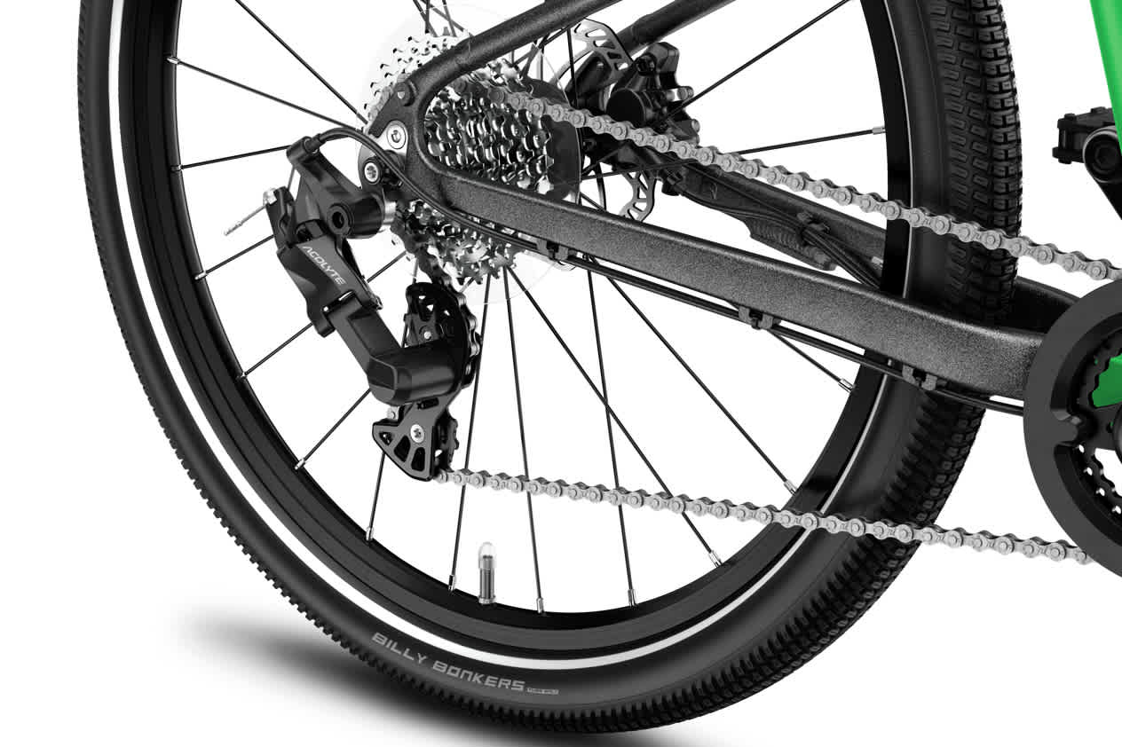 Enten underlaget er asfalt eller grus, gir Billy Bonkers-dekkene fra den anerkjente produsenten Schwalbe optimal ytelse. Med mønster fullt av mikrotenner får man lav rullemotstand og maksimalt grep – både på og utenfor veien.